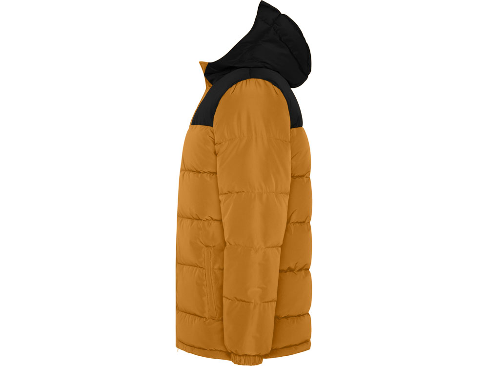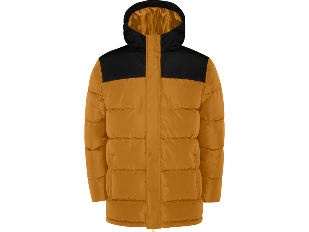 Утепленная куртка с капюшоном · передняя молния закрывается планкой · защита для подбородка · два боковых кармана на молнии · эластичный манжеты · специальный доступ для нанесения на спинке