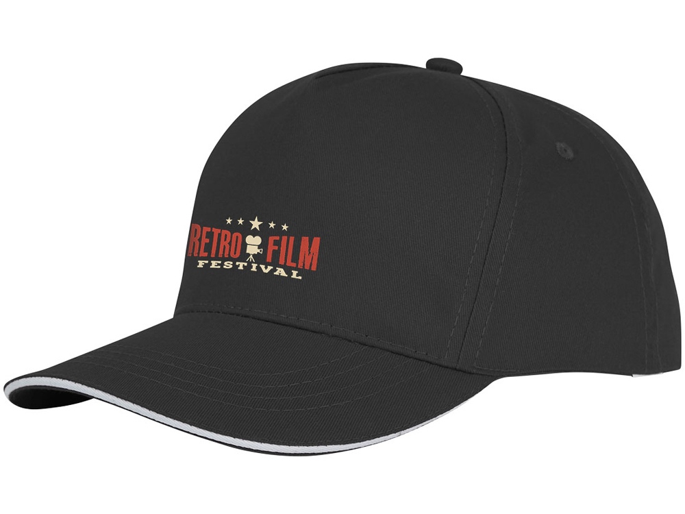 Пятипанельная кепка-сендвич Ceto. Предварительно изогнутый многослойный козырек.Вышитые люверсы.Тканая липучка.Structured front panel.Cotton inside details. Хлопок. 175 г/м².