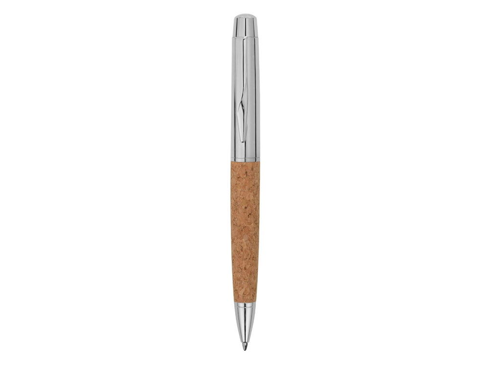 Металлическая шариковая ручка Cask с вставкой из пробки на корпусе в металлическом футляре.