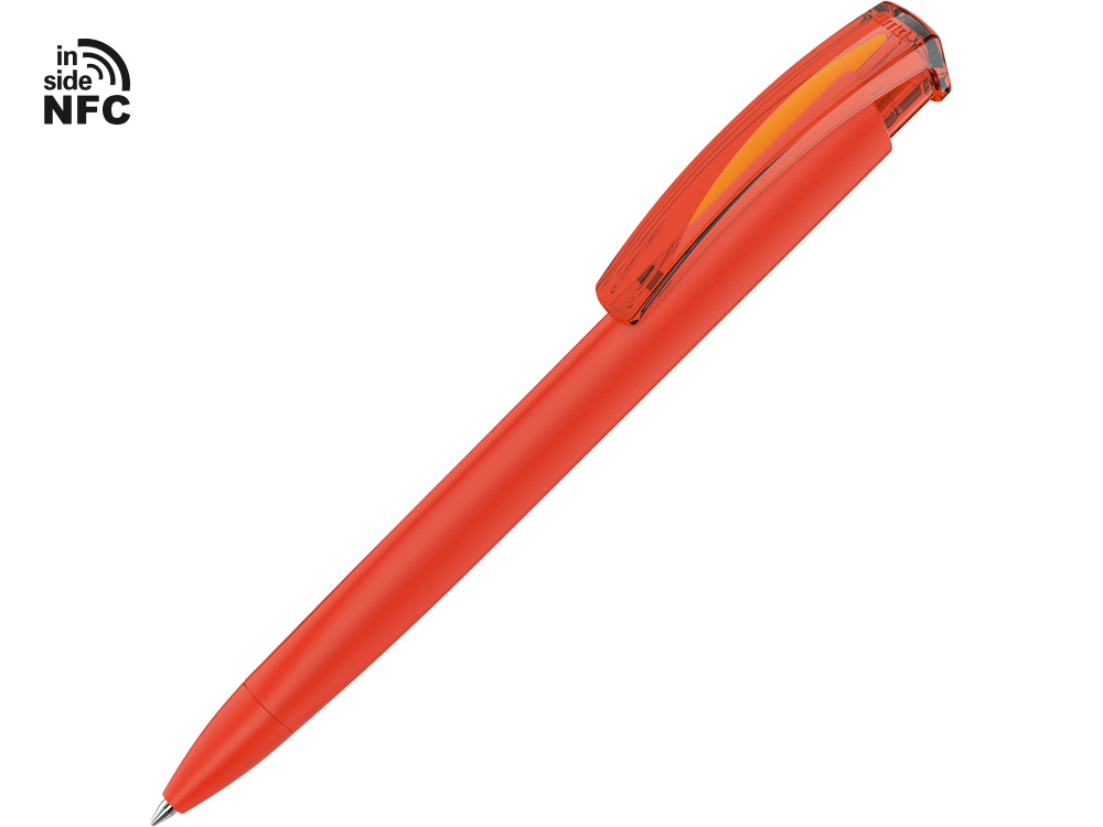 Пластиковая шариковая ручка Trinity K transparent Gum soft-touch с чипом передачи информации NFC обеспечивает быстрый доступ к рекламной информации. Для передачи данных посредством технологии NFC смартфон или планшет, которые поддерживают данную технологию, необходимо поднести к запрограммированной на ручке метке NFC (метка расположена под логотипом NFC). После этого на смартфоне или планшете откроется запрограммированная ссылка на сайт, ролик или начнется загрузка другой информации (заранее загруженной в сеть интернет). Таким образом метка работает как код, при чтении которого смартфон или планшет открывает определенную программу, активирует функцию или ссылку. Можно запрограммировать на метке NFC адрес сайта, каталог и другие рекламные материалы и раздавать вместо визиток. Метка NFC активирует одно действие на смартфоне или планшете. Внимание, программирование метки производится только компанией UMA. Если вы разместили заказ на ручку с меткой, но не прислали информацию, которую необходимо на нее записать, в заказе может быть отгружена ручка без чипа NFC.