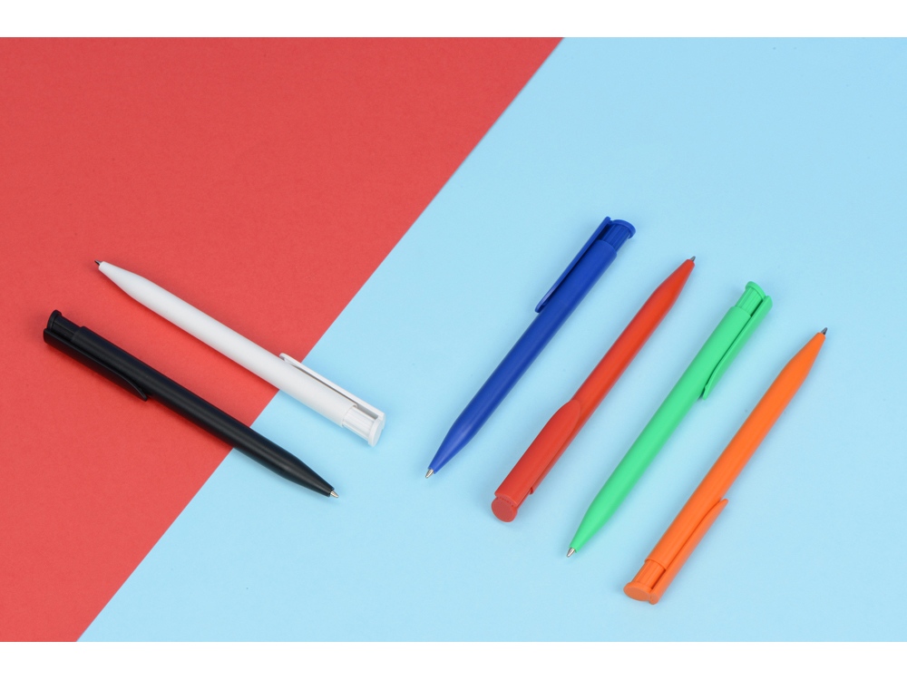 Ручка с нажимным механизмом, корпус из матового непрозрачного пластика. Широкий клип под нанесение логотипа. Стержень 8-0865 uma Economy Jumbo Refill синего цвета с вольфрамово-карбидным шариком (1,0 мм). Длина письма: примерно 1 200 м. Немецкие чернила соответствует стандарту ISO.
