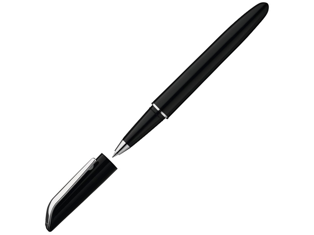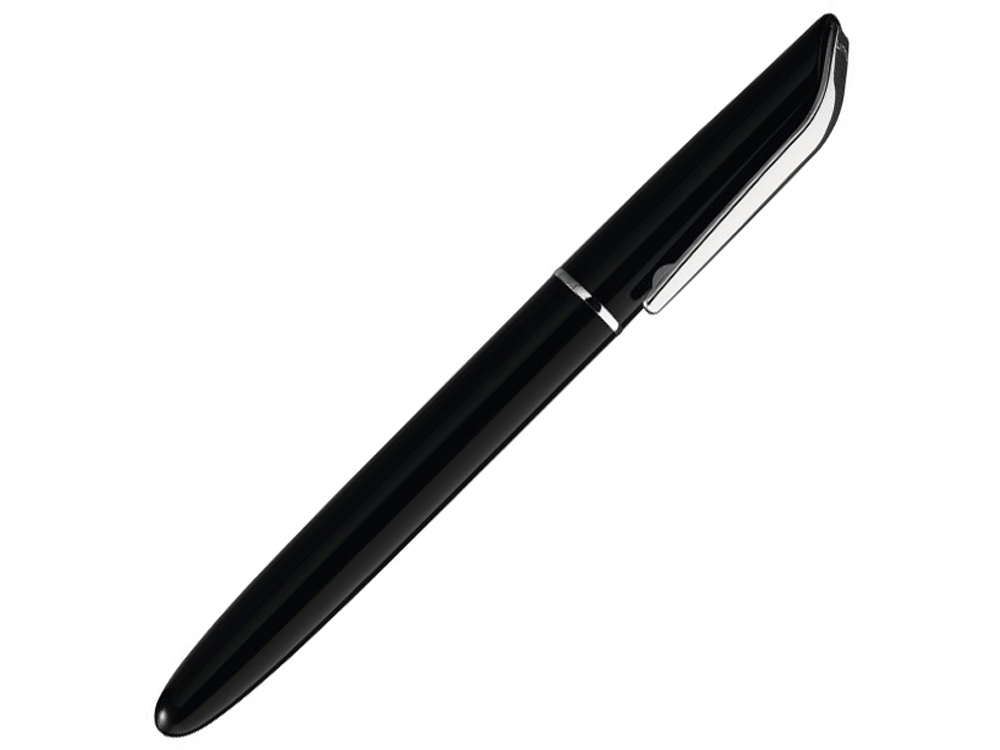 Ручка роллер в глянцевом тонированном корпусе. Декоративное кольцо и металлический клип с глянцевой хромированной отделкой.