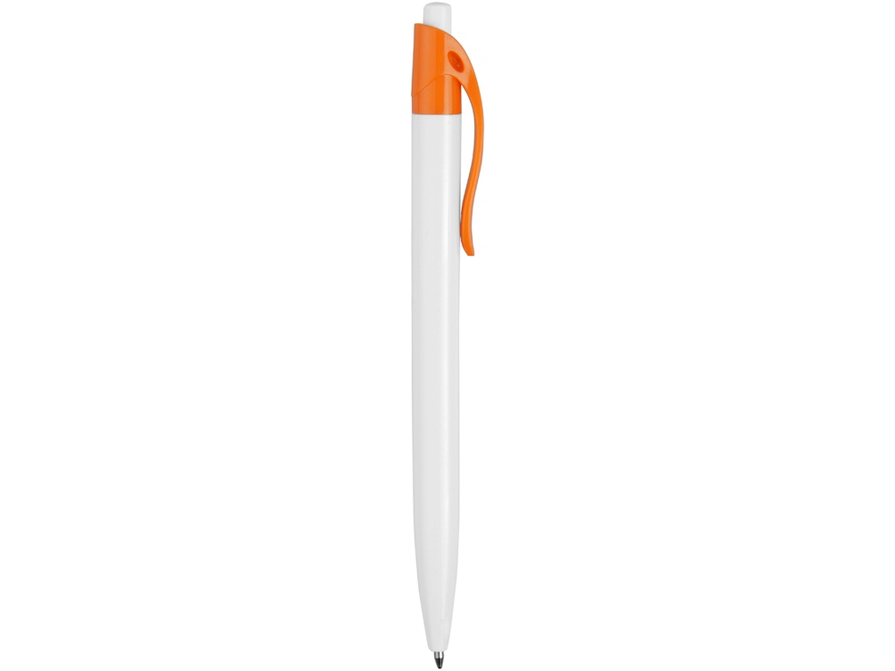 Стильная пластиковая ручка с ярким цветным клипом и белым корпусом отлично подойдет для нанесения логотипов и рекламной информации. Нажимной механизм.