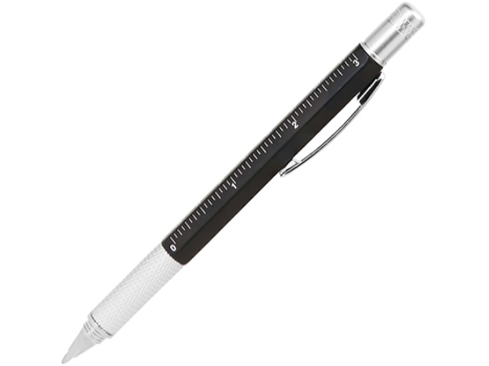 Многофункциональная ручка: уровень, сантиметровая и дюймовая линейка, плоская отвертка и звездообразная отвертка. Корпус доступен в различных цветах. Синие чернила.