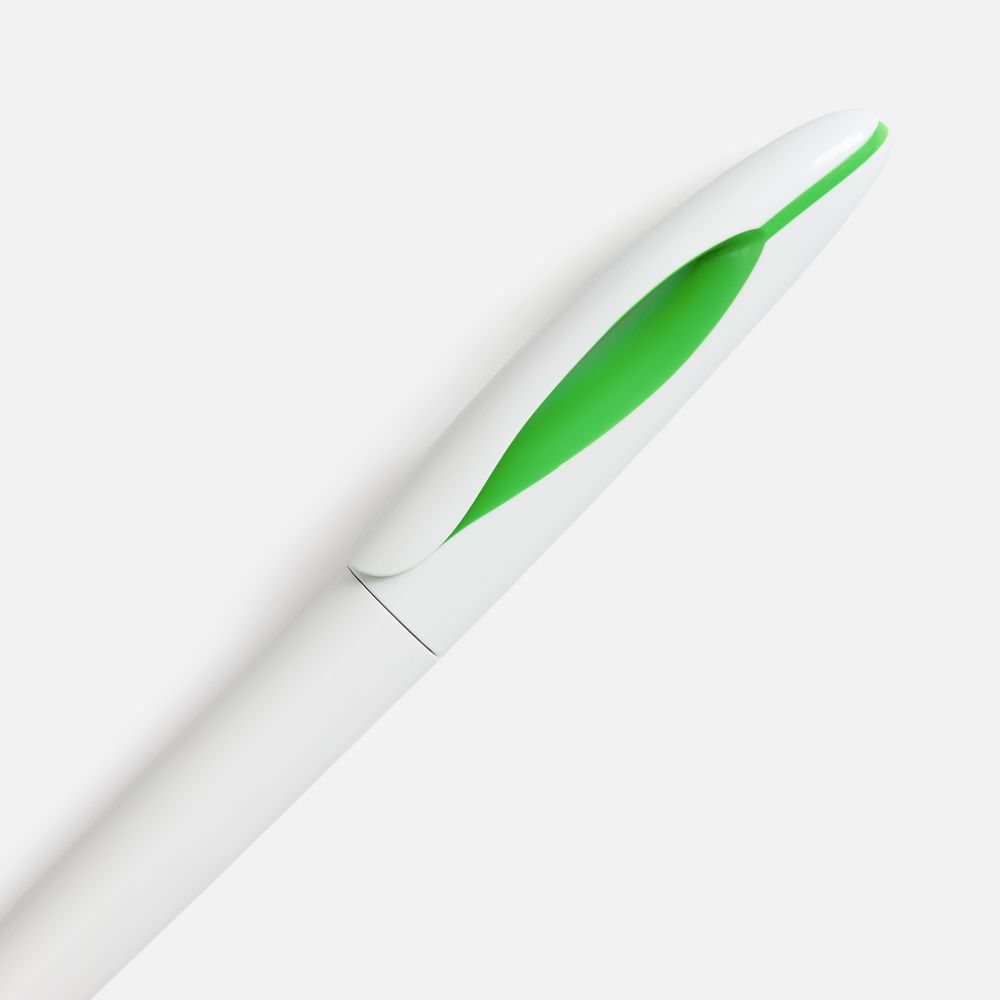 Ручка шариковая Nave, белая с зеленым купить оптом и в розницу с нанесением логотипа в Казани