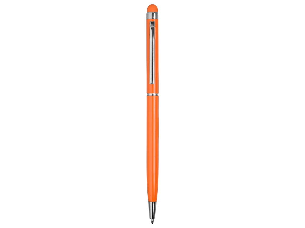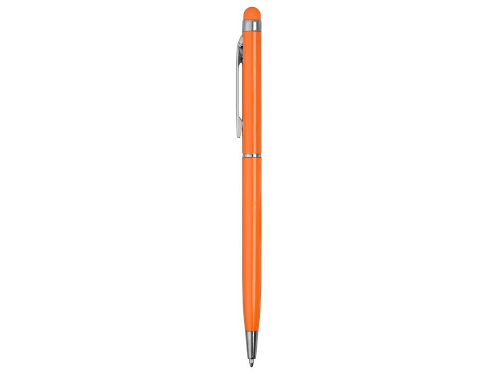Тонкая металлическая шариковая ручка с поворотным механизмом и стилусом. Функциональный и стильный аксессуар станет отличным подарком.