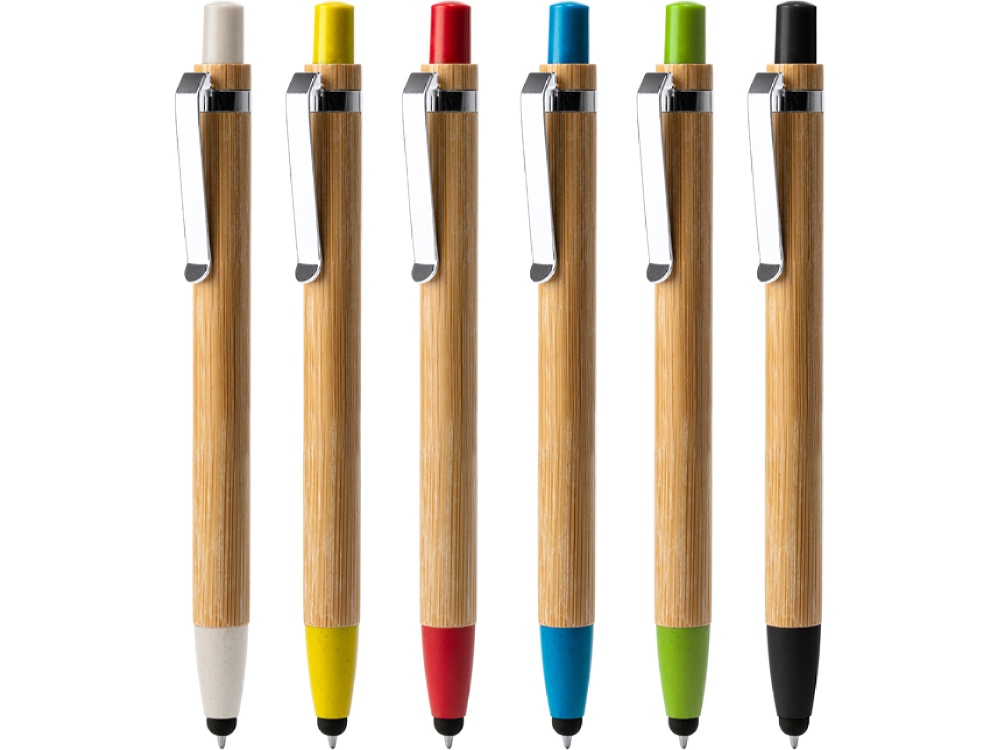 Шариковая ручка с бамбуковым корпусом и стилусом