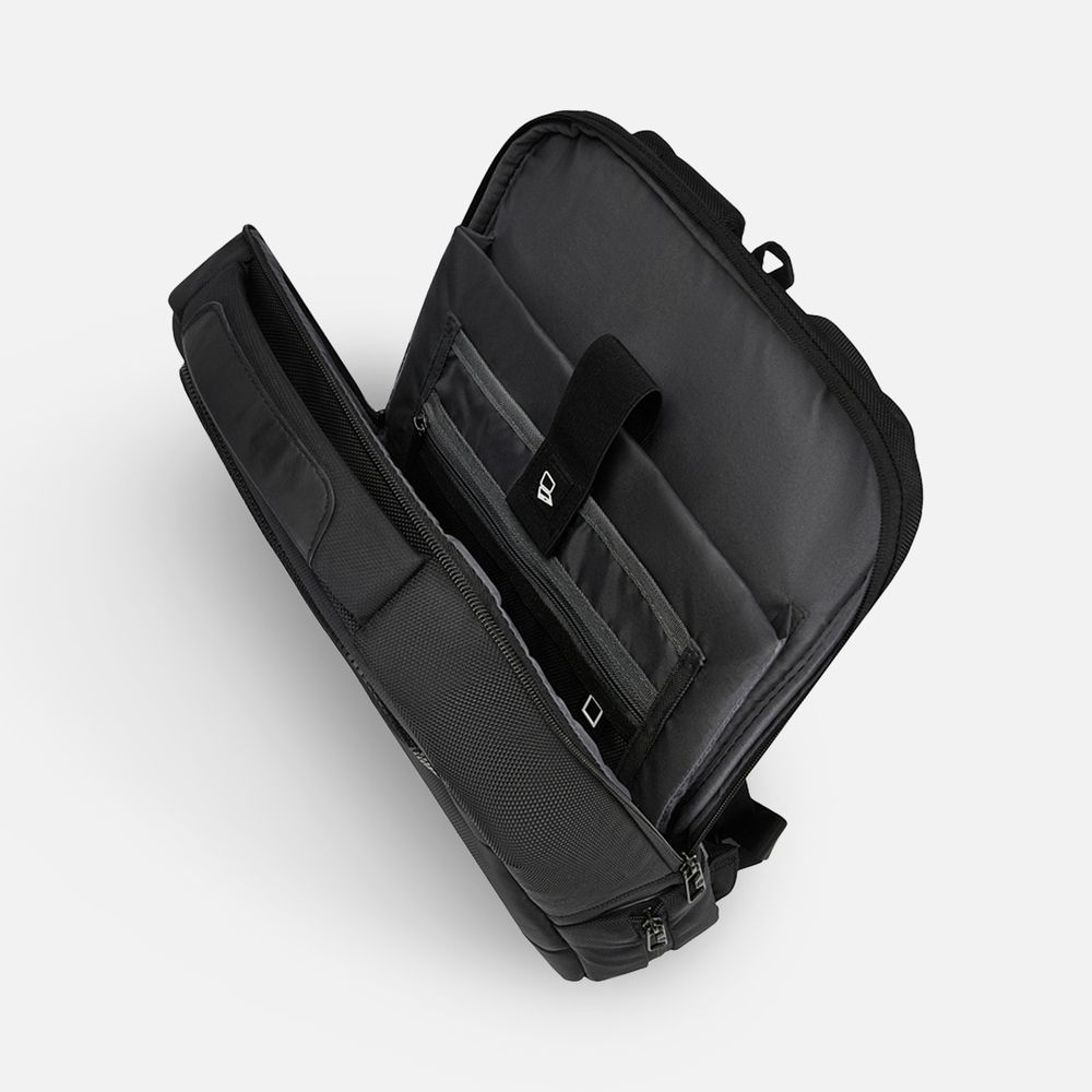 • В основном отделении защитный карман для ноутбука с диагональю до 15,6" и сетчатый карман на молнии для планшета