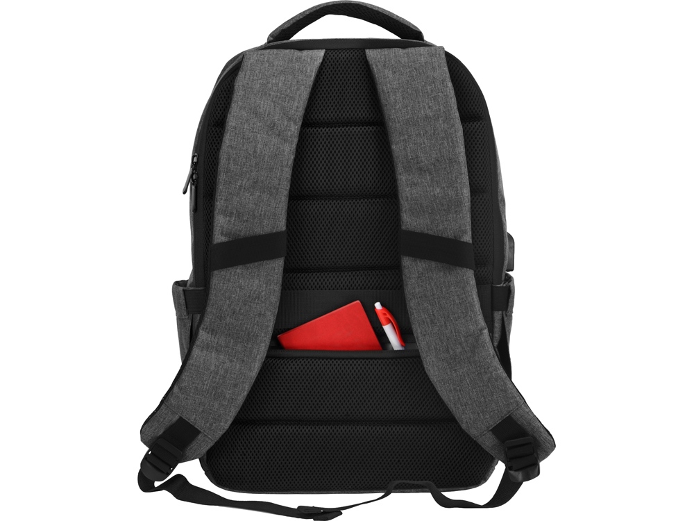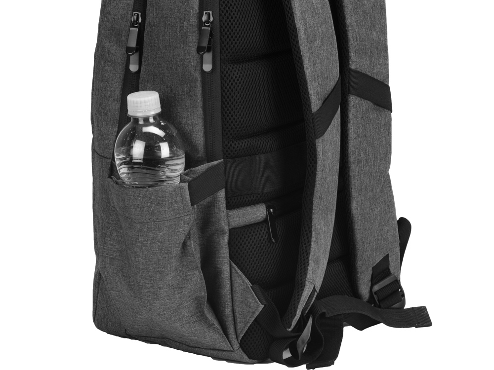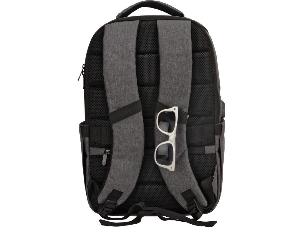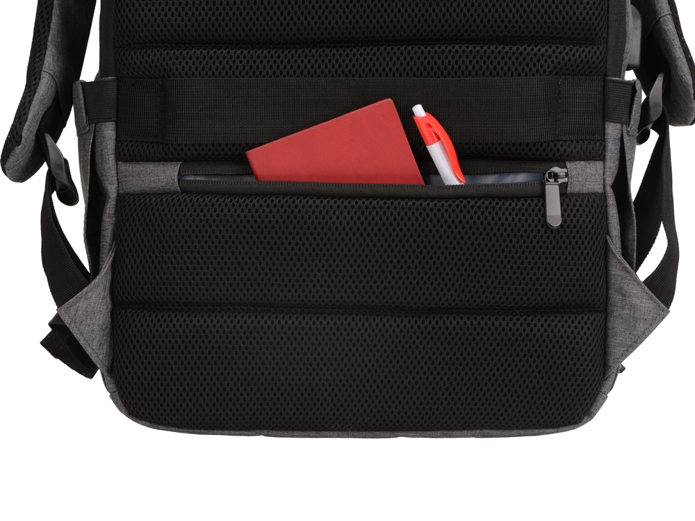 Удобный рюкзак для делового человека с двумя вместительными отделениями, в котором предусмотрено все до мелочей: - отделение с карманом для ноутбука 15.6' - отделение с органайзером - наружный карман на молнии -затрудненный несанкционированный доступ к отделению для ноутбука и планшета благодаря тому, что молния смещена к спинке - задний потайной карман с молнией на спинке - 2 боковых кармана на резинках, что позволяет им регулироваться по ширине под бутылки разного диаметра - ремень для крепления к чемодану - USB выход - дышащая сетчатая спинка - регулируемые по длине лямки