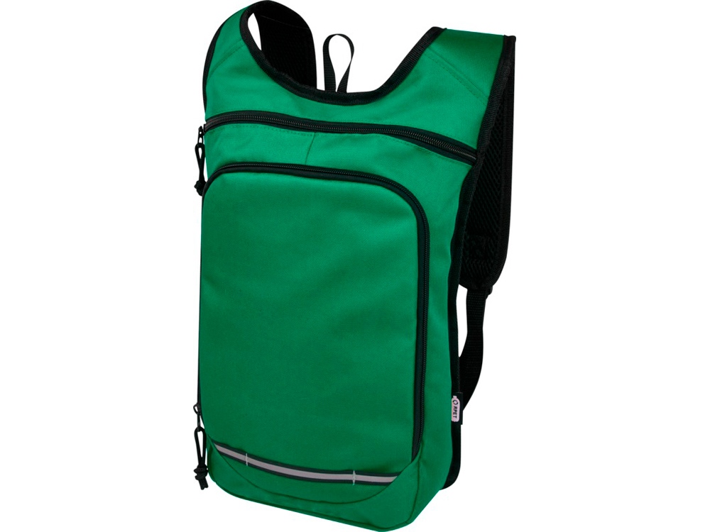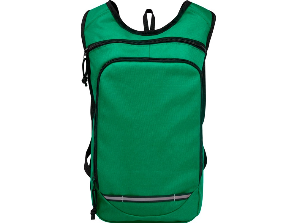 Рюкзак Trails изготовлен из 100% переработанной по стандарту GRS водоотталкивающей ткани и имеет один передний карман на молнии и одно основное отделение на молнии, а также отделение для гидросистемы. Светоотражающие полосы для видимости и сетчатая задняя часть для комфорта при переноске делает его отличным экологичным выбором для активного отдыха.