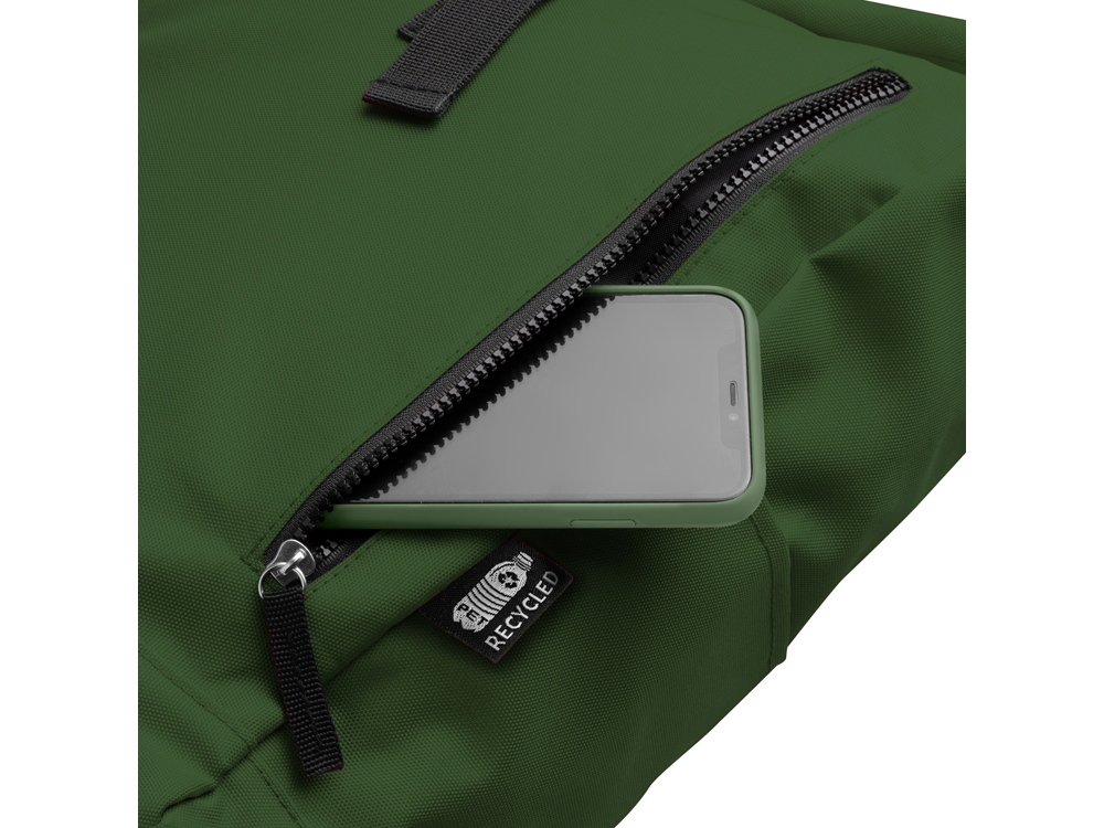 Рюкзак из полиэстера RPET. Основное вместительное отделение с широким отверстием. Внешний карман на молнии и два боковых кармана. Мягкие сетчатые плечевые ремни и спинка.