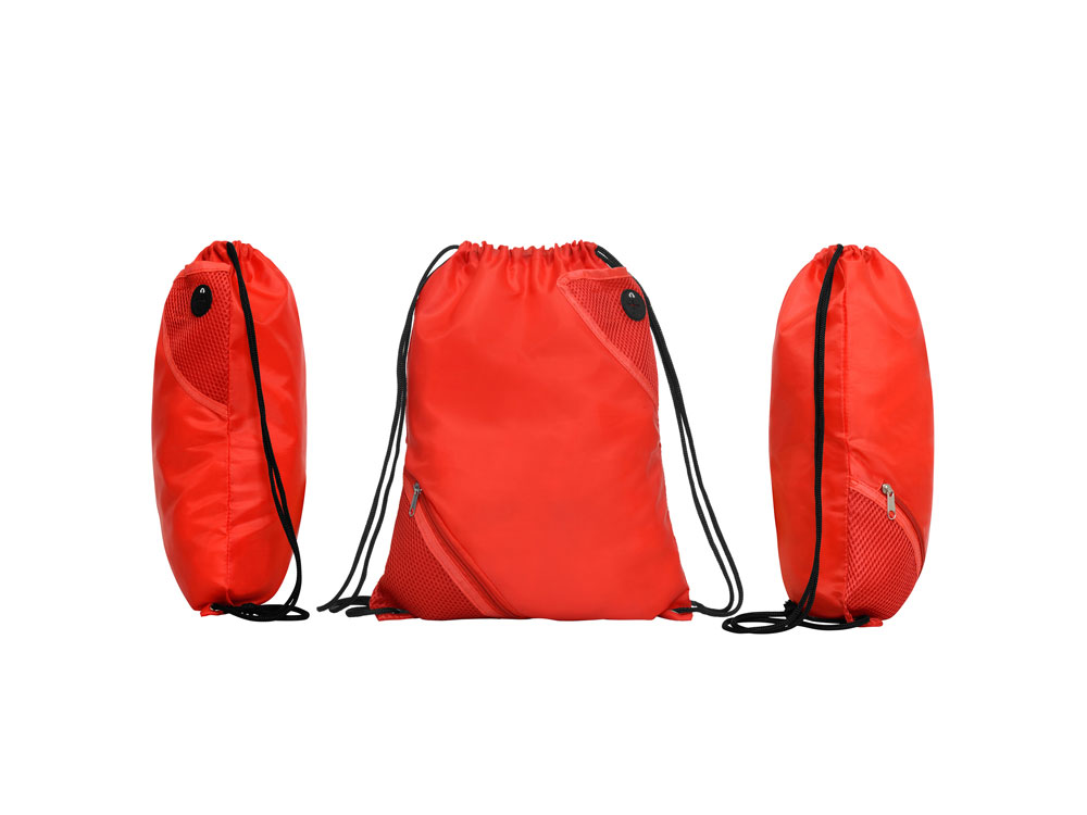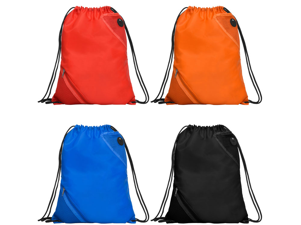 Рюкзак-мешок. Металлические люверсы. Передние карманы из микроперфорированной ткани. Выход для наушников.