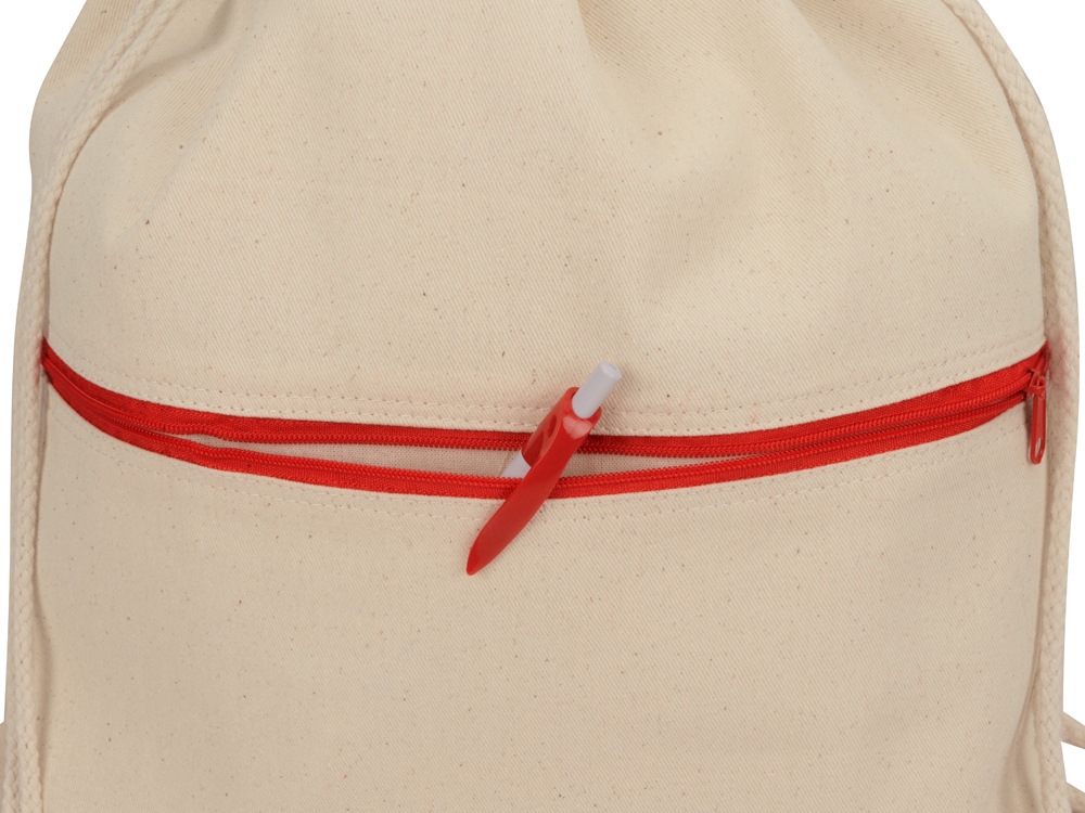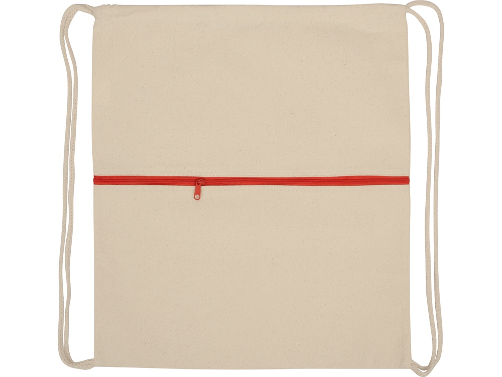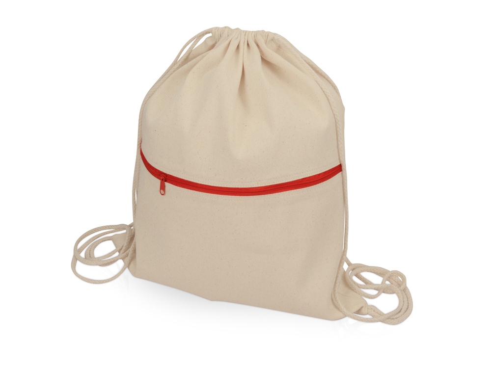 Рюкзак-мешок хлопковый Lark с цветной молнией, натуральный/красный