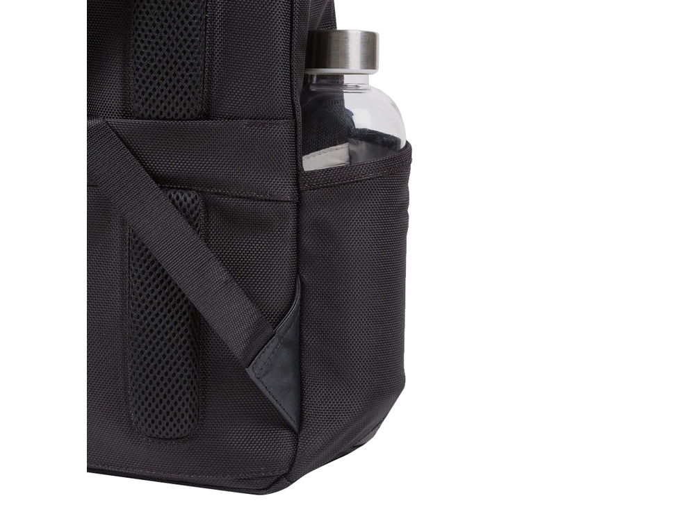 Рюкзак из переработанного текстиля с отделениями для ноутбука и iPad® и карманами для зонта и бутылки - мягкое отделение для ноутбука 14 - отделение для iPad® 10,2'', iPad® Air 10,9'', iPad®Pro 11'' - внутренний карман для мобильного телефона - карман для AirPods® - внешний держатель для бутылки - отстегиваемая адресная бирка - карман для зонта - складной карман для бутылки - петлая для ручки - ремень для крепления на ручке чемодана