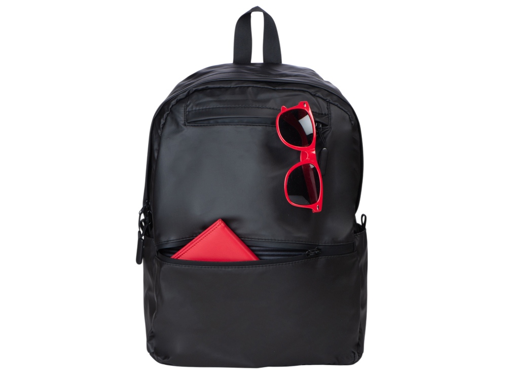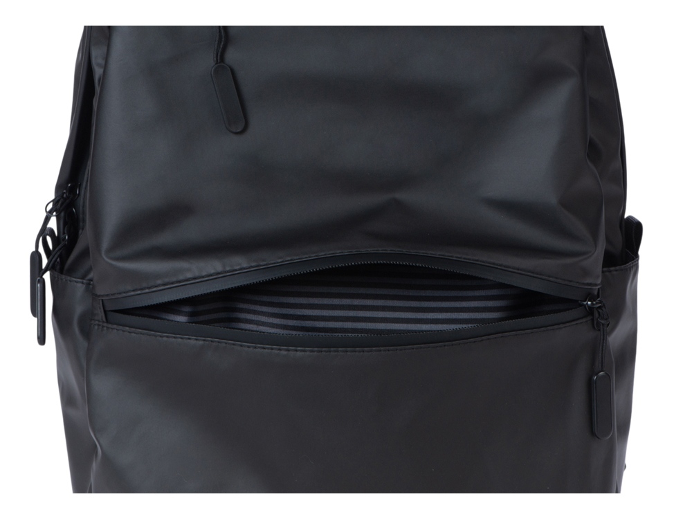 Элегантный легкий городской рюкзак из мягкого приятного на ощупь материала можно использовать для передвижений по городу, а так же в поездках, для чего на спинке предусмотрен ремень для крепления на ручку чемодана. Для удобства и компактного хранения содержимого снаружи расположены 2 передних кармана на молниях и 2 боковых кармана. Внутри уплотненный карман для ноутбука. Стильная подкладка в полоску в тон цвета внешнего материала делает рюкзак модным аксессуаром. Благодаря водостойкому материалу и молниям содержимое рюкзака не намокнет под дождем. Лямки регулируются по длине.