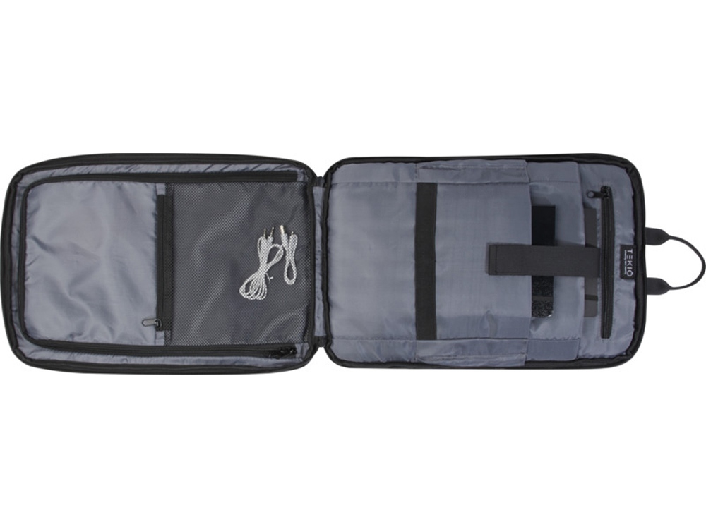 Изготовленный из прочного переработанного полиэстера 900D, сертифицированного по стандарту GRS, рюкзак Rise выполняет все необходимые функции. Имеет мягкий чехол для ноутбука с диагональю 15,6 дюйма, дополнительное отделение для небольшого ноутбука или планшета, а также карманы на молнии для небольших предметов. Кроме того, на внутренней стороне имеется эластичный ремешок для размещения бутылки с водой. На спинке рюкзака есть удобный эластичный ремень, позволяющий легко крепить его к тележке. Переработанный полиэстер, 330 g/m2, подкладка- 900D переработанный полиэстер, 290 g/m2.