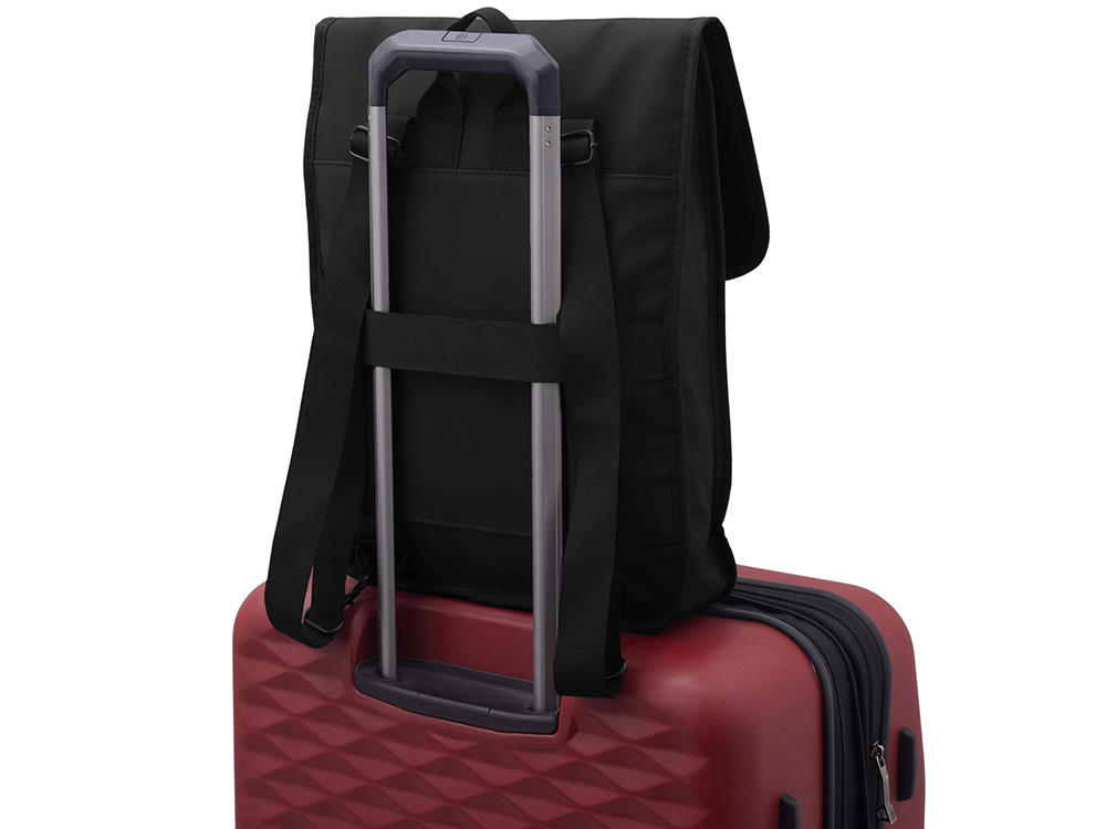 Этот бизнес-рюкзак из приятной на ощупь ПУ кожи удобен для передвижения с гаджетами по городу. Рюкзак оснащен всем необходимым для комфортного использования: застежка-карабин с регулировкой наполняемости рюкзака, регулируемые по длине лямки, карман для ноутбука внутри, ремень для крепления на ручку чемодана снаружи.
