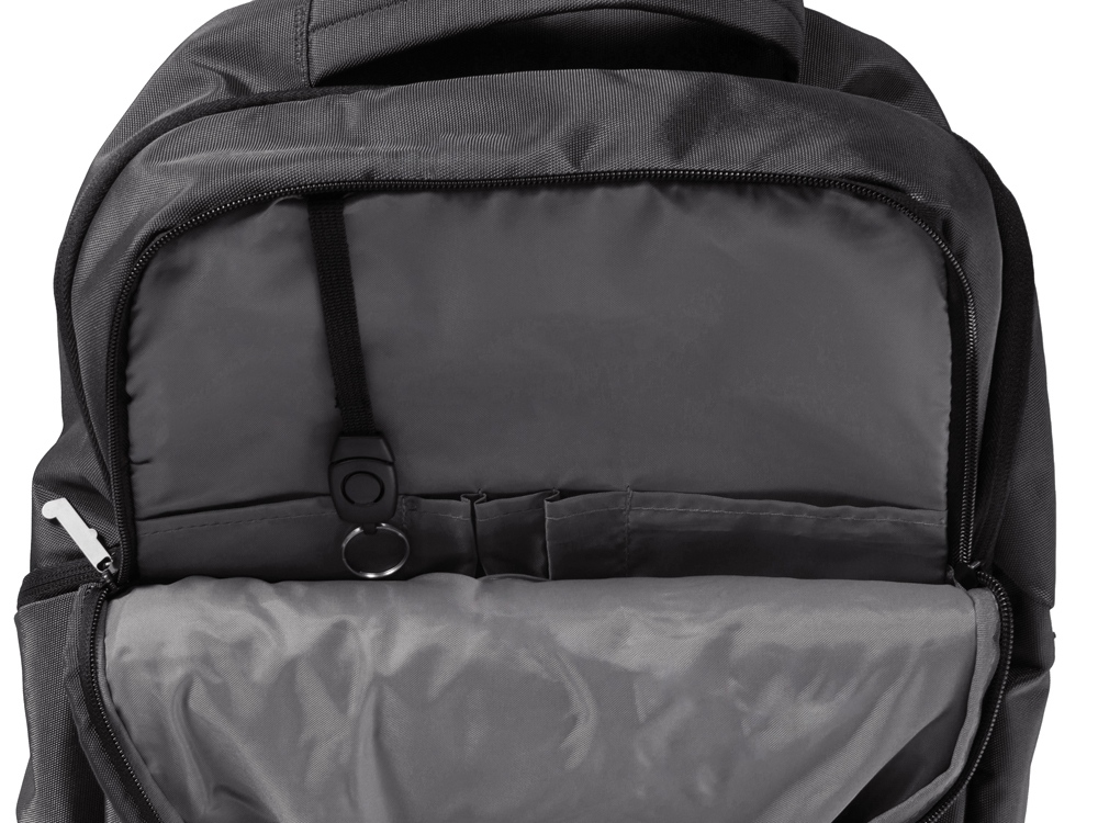 Вместительный городской рюкзак для деловых людей, состоящий из 2х отделений: - 2 кармана для ноутбука и планшета - органайзер - карабин для ключей - 2 боковых кармана, закрывающиеся на молнии - светоотражающий элемент спереди для большей безопасности в темное время суток - ремень для крепления на ручку чемодана - регулирующиеся по длине лямки - сетчатая спинка