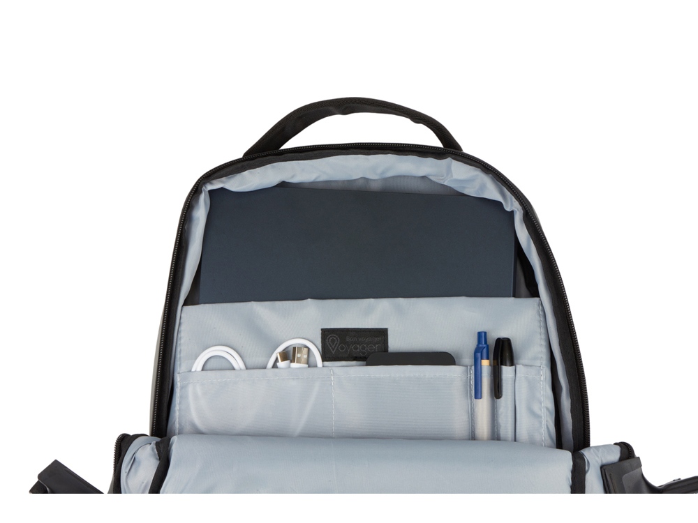 Городской рюкзак из плотной и мягкой экокожи имеет элегантный и продуманный до мелочей дизайн. Внутри расположен карман для ноутбука и органайзер. Наружный карман с эластичной вставкой расширяется и фиксируется кнопкой. Мягкая сетчатая спинка обеспечивает дополнительный комфорт. Регулируемые по длине лямки подойдут для любого пользователя. Нанесение на съемном шильде. Нетканый мешок в комплекте.