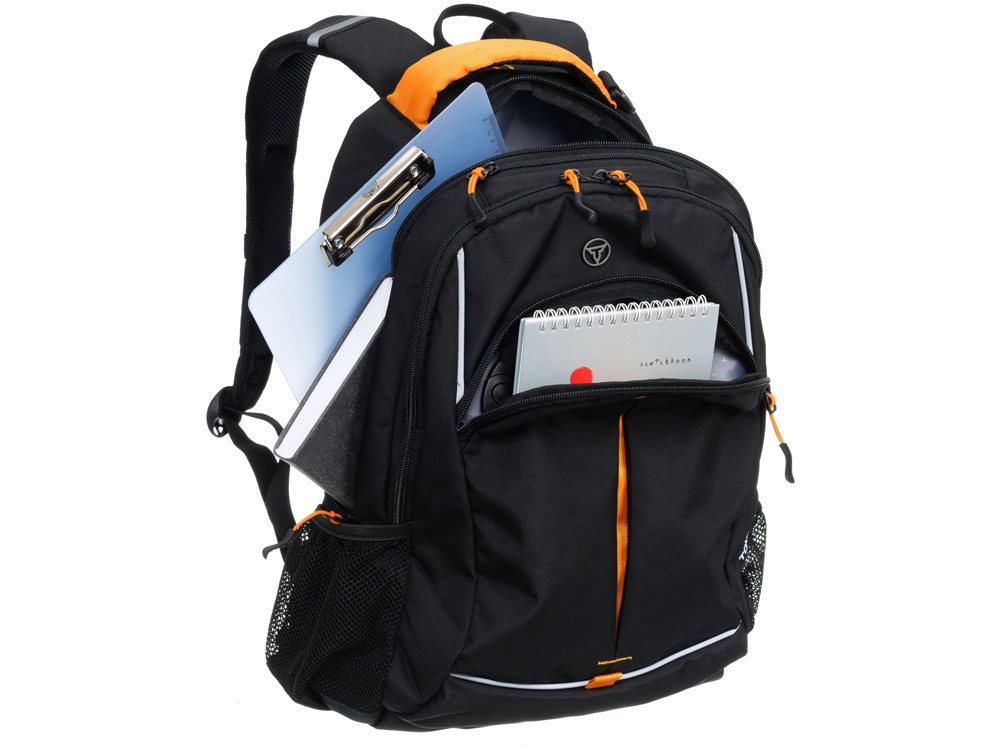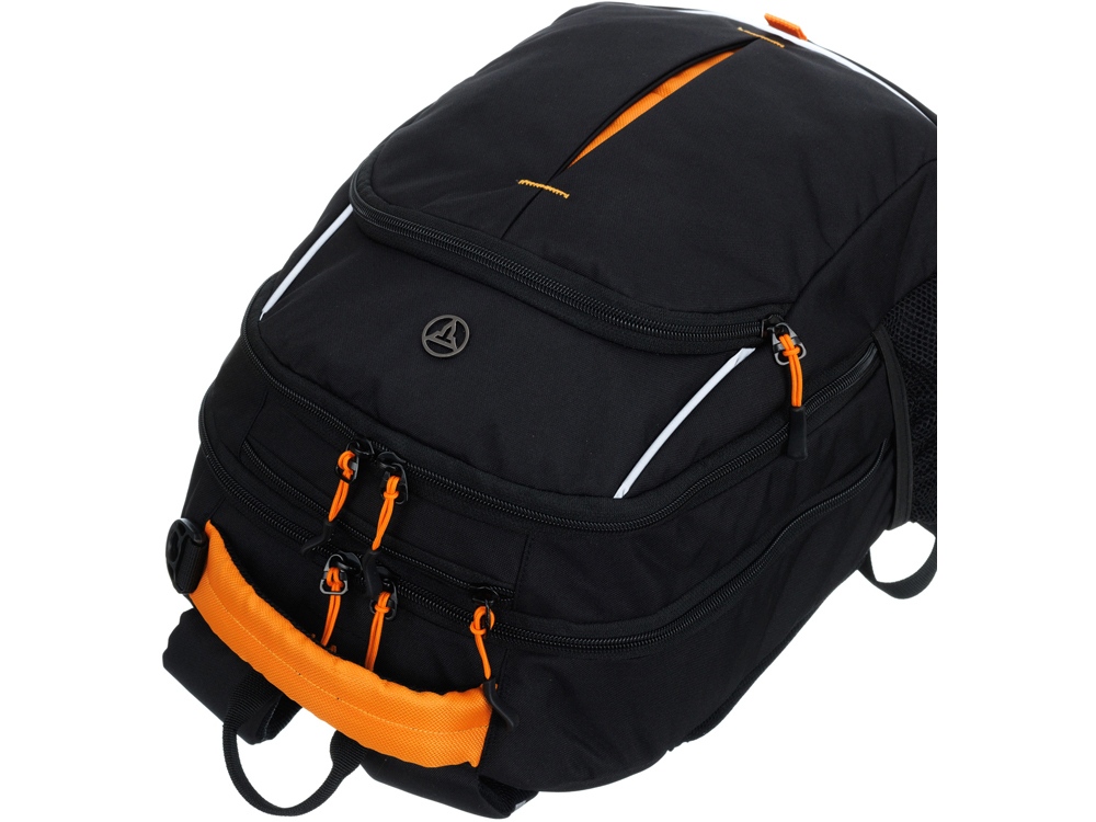 Городской рюкзак TORBER Rockit - это отличное решение для тех, кто живёт активной жизнью. Рюкзак имеет светоотражающие элементы, которые сделают Вас заметнее на дороге в темное время суток и в условиях плохой видимости. Безопасность нахождения обладателя данной модели рюкзака у границы проезжей части теперь находится на более качественном уровне. Два боковых кармана из эластичной сетки предназначены для хранения бутылок воды или зонта. Карман-органайзер и кольцо для ключей помогут вам упорядоченно разложить большое количество мелких предметов. Рюкзак имеет эргономичную ручку для более комфортного использования. Оригинальный дизайн и неповторимый стиль модели подчёркивают чёрный и оранжевый цвета. Функциональная организация: - Светоотражающие элементы - Отверстие для гарнитуры, наушников и проводов для зарядного устройства - Спинка рюкзака с системой циркуляции воздуха имеет специальную рельефную поверхность, обеспечивает удобное прилегание к спине и вентиляцию - Карман-органайзер включает ключницу и многочисленные кармашки для пишущих принадлежностей, мобильного телефона, других аксессуаров - Эргономичные плечевые ремни анатомической формы, оснащённые пропускающей воздух набивной подкладкой, обеспечивают максимальное удобство в использовании рюкзака - Карманы из эластичной сетки подходят для хранения бутылок с водой и зонта
