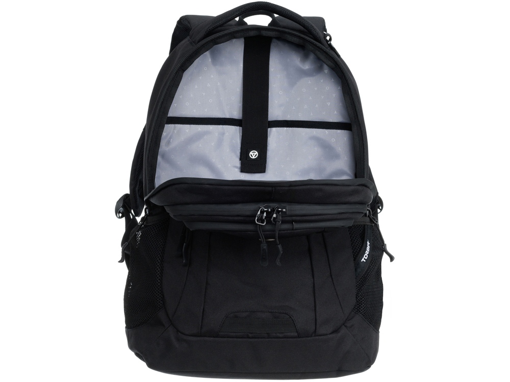 Городской рюкзак TORBER Rockit T2376 - это отличное решение для тех, кто живёт активной жизнью, предпочитает чёрный цвет и минимализм, но при этом чтобы всё необходимое было легко доступно и упорядоченно. Карман-органайзер и кольцо для ключей позволят вам упорядоченно хранить большое количество мелких вещей, необходимых в дороге. Спинка рюкзака с системой циркуляции воздуха имеет специальную рельефную поверхность, обеспечивающую удобное прилегание к спине Благодаря прочной эргономичной ручке вы можете носить рюкзак не только на спине, но и в руках. Два эластичных боковых кармана позволят вам носить зонт или бутылки с водой. Регулируемые плечевые ремни позволяют вам выбрать максимально удобно положение рюкзака на спине. Благодаря объёму 24 л у вас есть возможность взять с собой всё необходимое. Функциональная организация: - Мягкое отделение подходит для большинства ноутбуков с диагональю экрана до 15; - Карман-органайзер включает в себя брелок для ключей и различные разделительные карманы для мелких предметов; - Мягкие регулируемые эргономичные плечевые ремни с подкладкой из дышащей сетчатой ткани; - Спинка рюкзака с системой циркуляции воздуха имеет специальную рельефную поверхность, обеспечивающую удобное прилегание к спине и вентиляцию; - Два сетчатых боковых кармана для бутылок с водой или зонта; - Ремень для соединения с ручкой чемодана дает возможность удобно перемещаться с багажом, держа рюкзак и чемодан одной рукой
