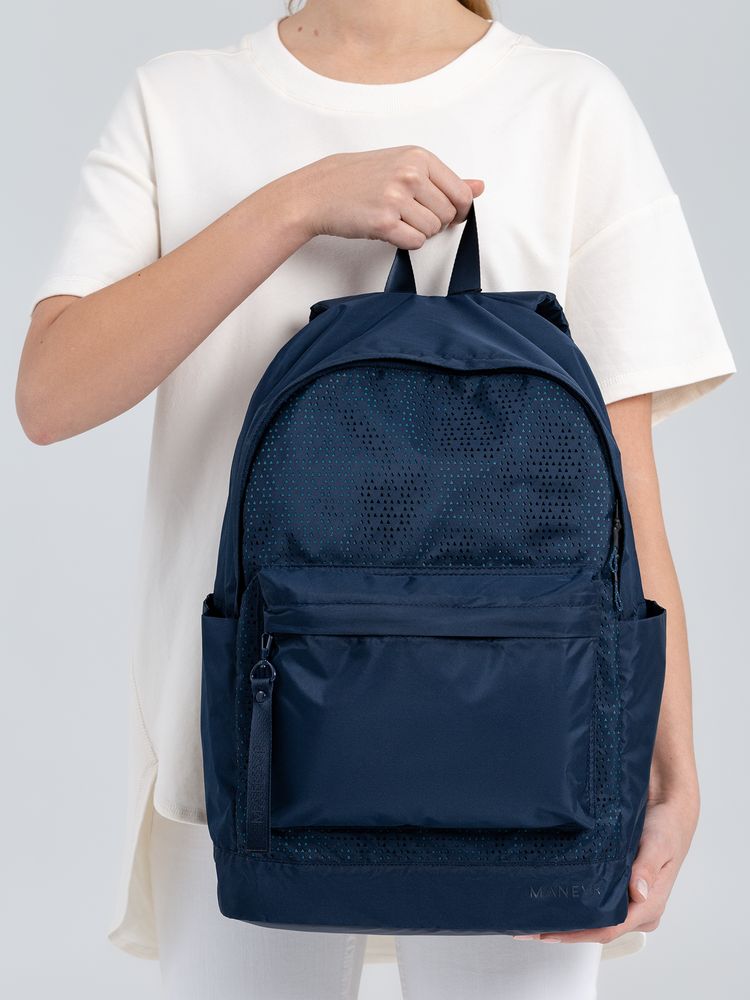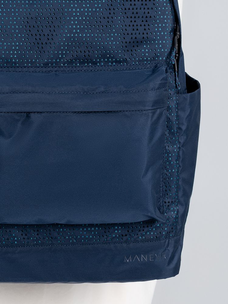 Цвета сумок  в коллекции Triangel позволяют создавать модные монохромные или контрастные сочетания с другими изделиями бренда Manevr. Рюкзаки изготовлены из шелковистого полиэстера, в отделке использована лазерная перфорация паттерна.
