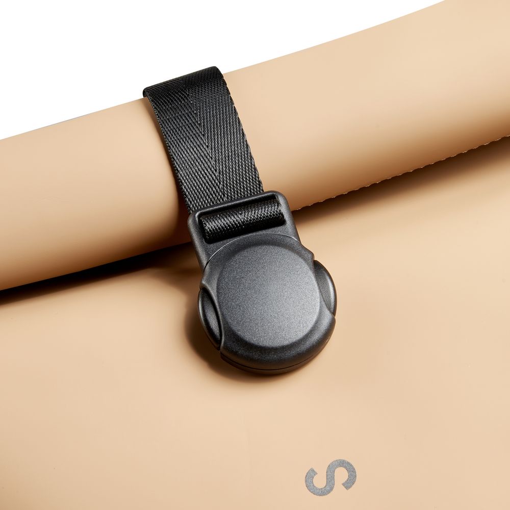 Вместимость рюкзака можно адаптировать благодаря застежке роллтоп — соедините магниты и заверните «лишнюю» часть, закрепив с помощью зажима.