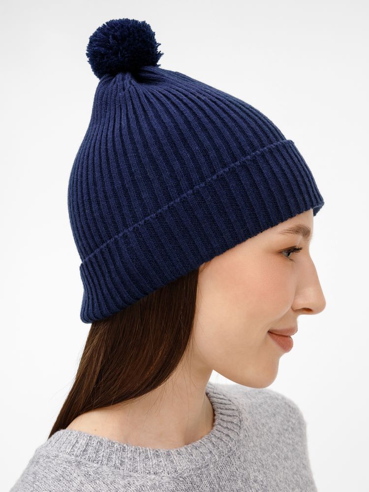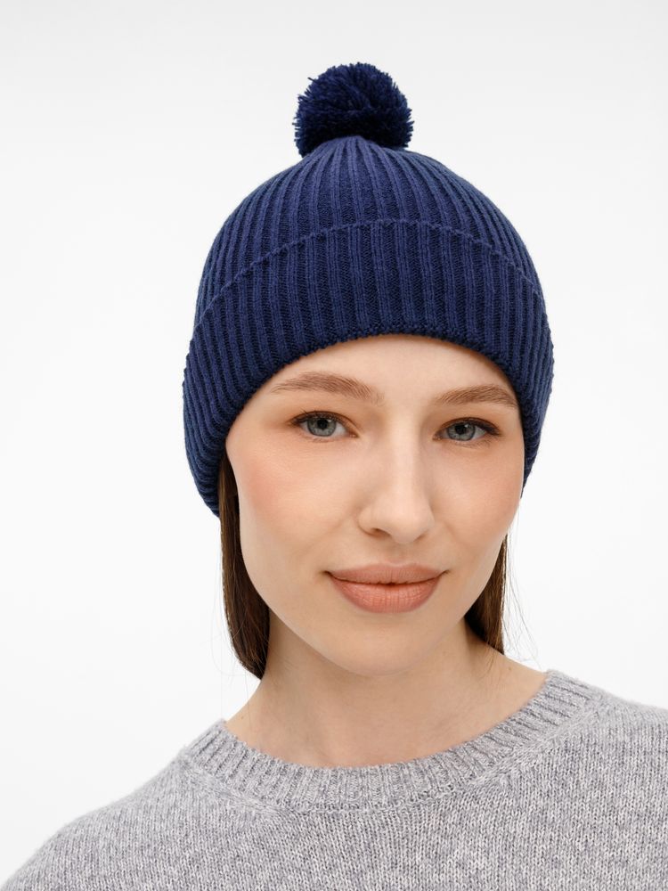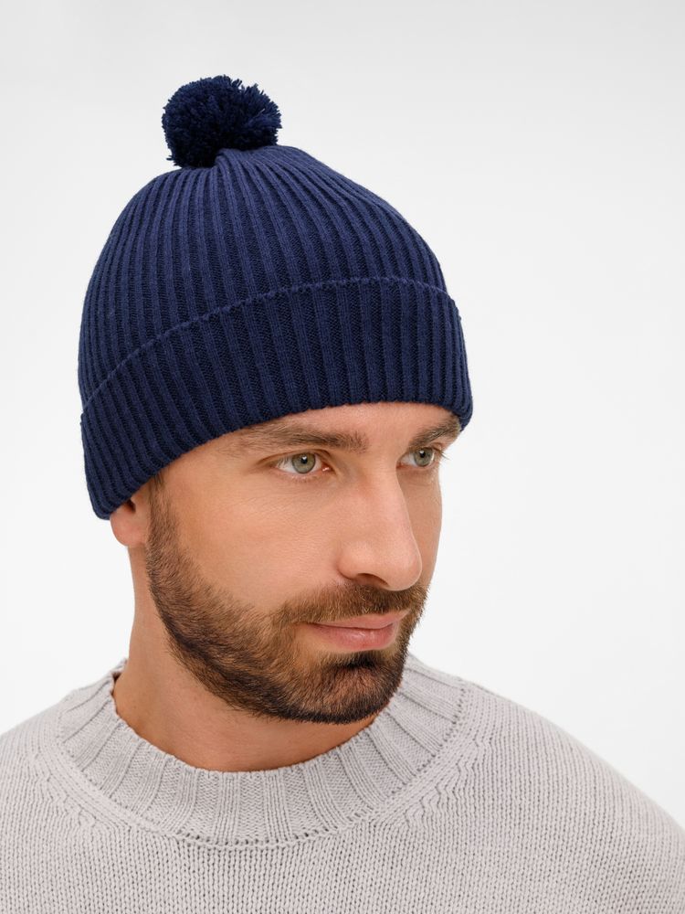 Шапка Catch Match с помпоном, темно-синяя купить оптом и в розницу с нанесением логотипа в Казани