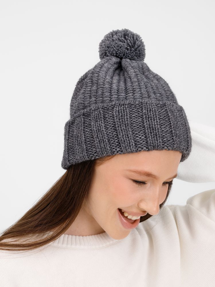 Однослойная шапка Frissonelle из полушерстяной пряжи рельефной вязки сохраняет тепло без излишней тяжести. Эластичный отворот мягко фиксирует шапку, не сдавливая голову, а пышный помпон добавляет лаконичный акцент, завершая образ. Эта модель станет верным спутником для городских прогулок в любую погоду.