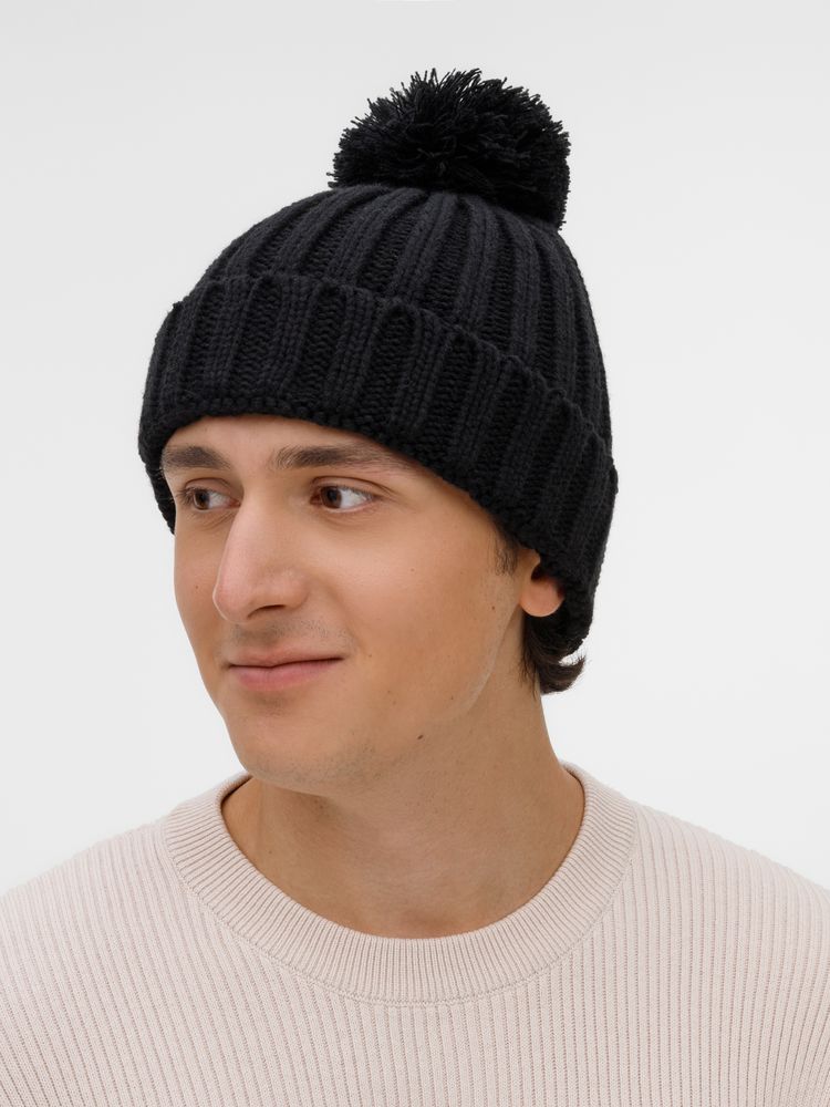 Шапка HappyGo, черная купить оптом и в розницу с нанесением логотипа в Казани