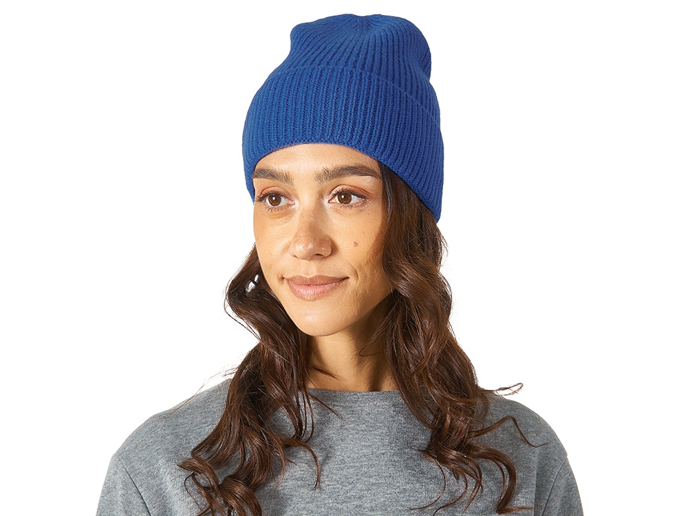 Вязаная шапка из мягкого трикотажа в рубчик. Шапка связана рибом 1х1.