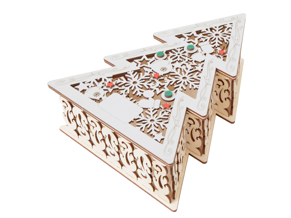 Шкатулка из натуральной березовой фанеры в форме ёлки. Минималистичный дизайн и качественный материал делают её практичным и эстетичным аксессуаром. Подходит для хранения мелочей, украшений или как упаковка для небольших подарков. Идеальный вариант корпоративного сувенира, который подчёркивает внимание к деталям.