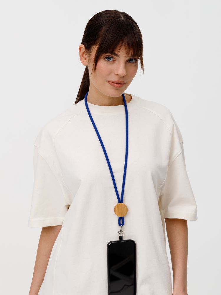Шнурок для бейджа Tube Wood, синий купить оптом и в розницу с нанесением логотипа в Казани