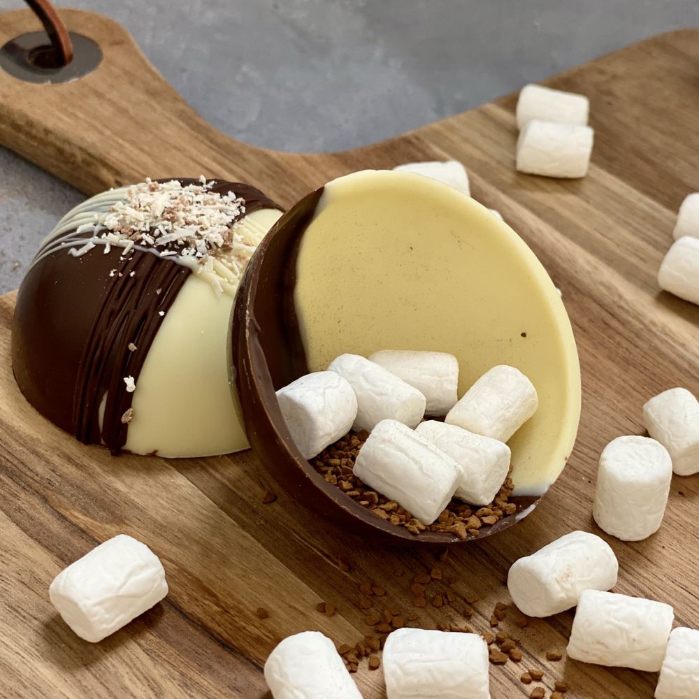 Шоколадные бомбочки с маршмеллоу внутри — это невероятно красивый и быстрый способ приготовить горячий шоколад с классическим или оригинальным вкусом. Опустите бомбочку в чашку, налейте сверху горячее молоко — и наблюдайте, как шоколадная сфера медленно тает, а нежные зефирки всплывают на поверхность.