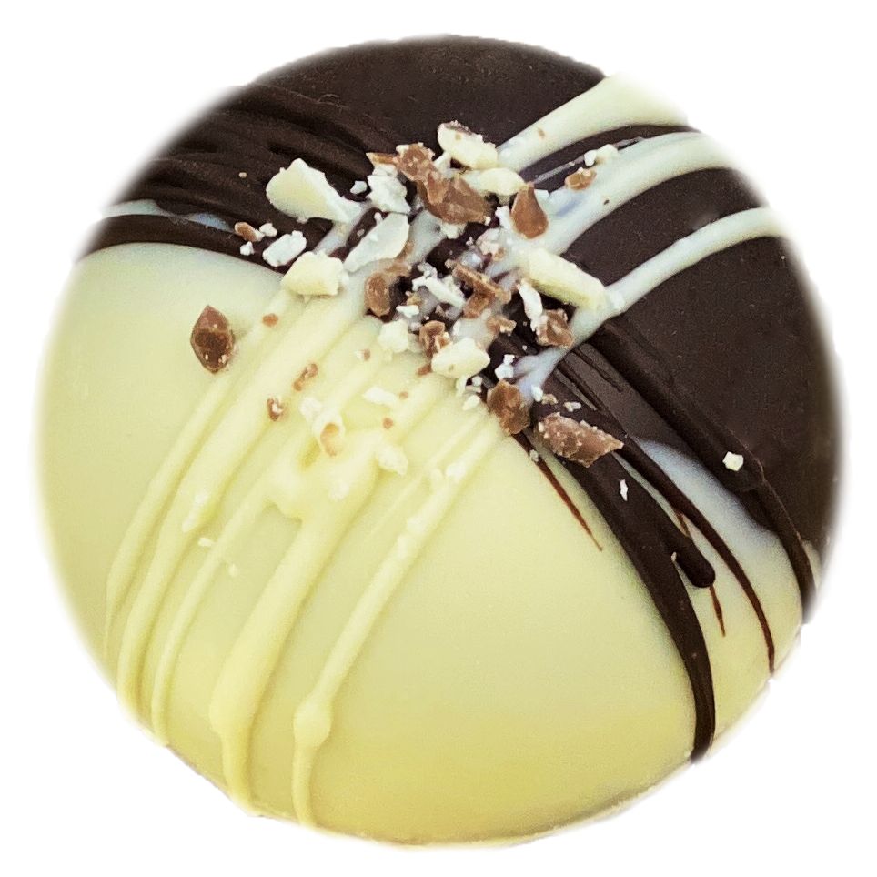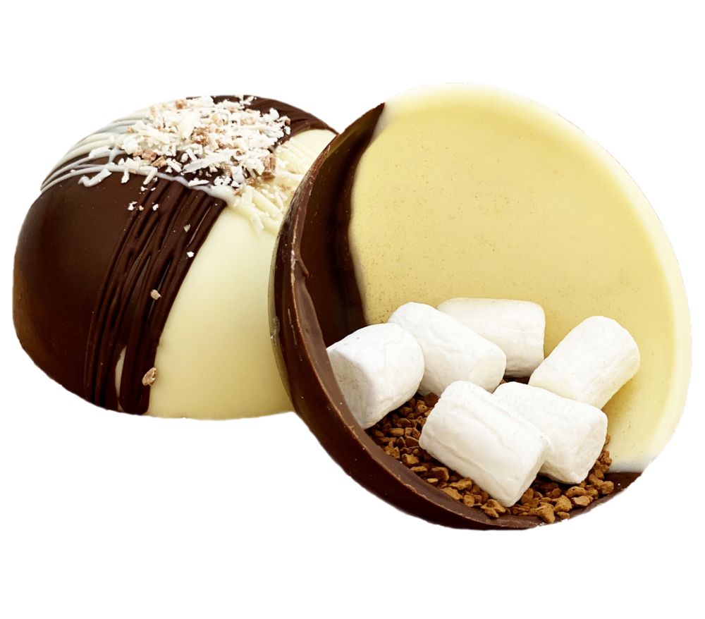 Состав: сфера из темного и белого шоколада, кофе растворимый сублимированный, маршмеллоу.