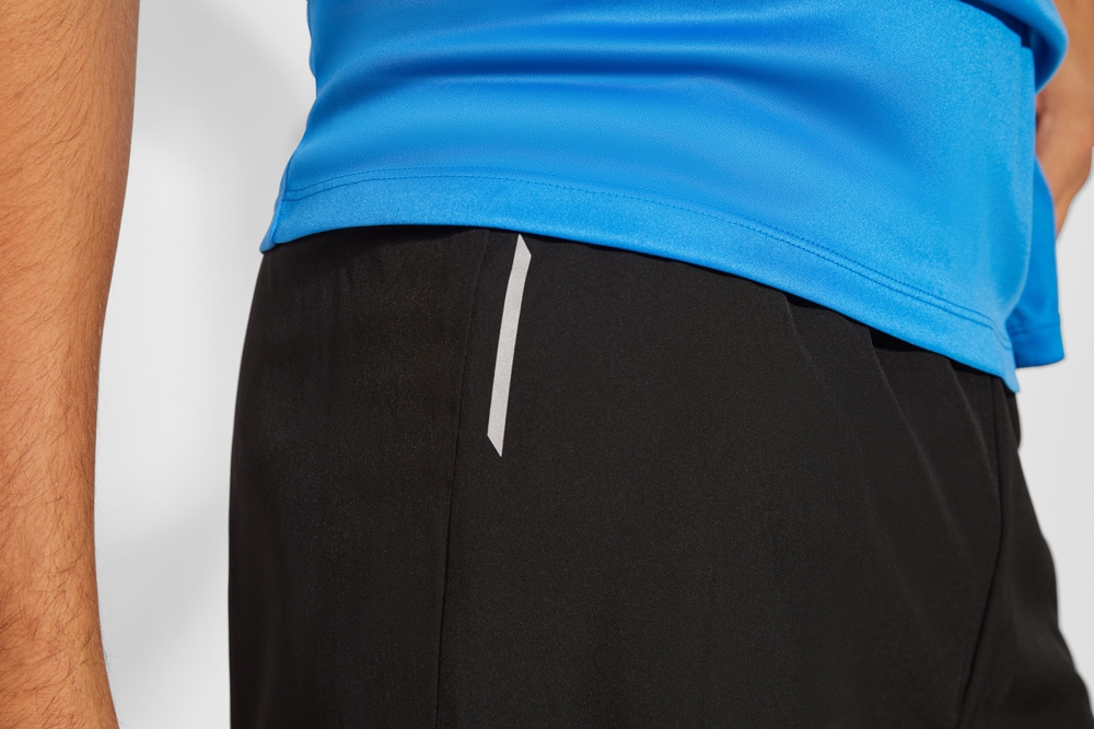 Спортивные шорты с подкладкой в форме трусов. Эластичный пояс с внутренним шнурком для регулировки. Светоотражающие детали. Ткань легко стирается и быстро сохнет.