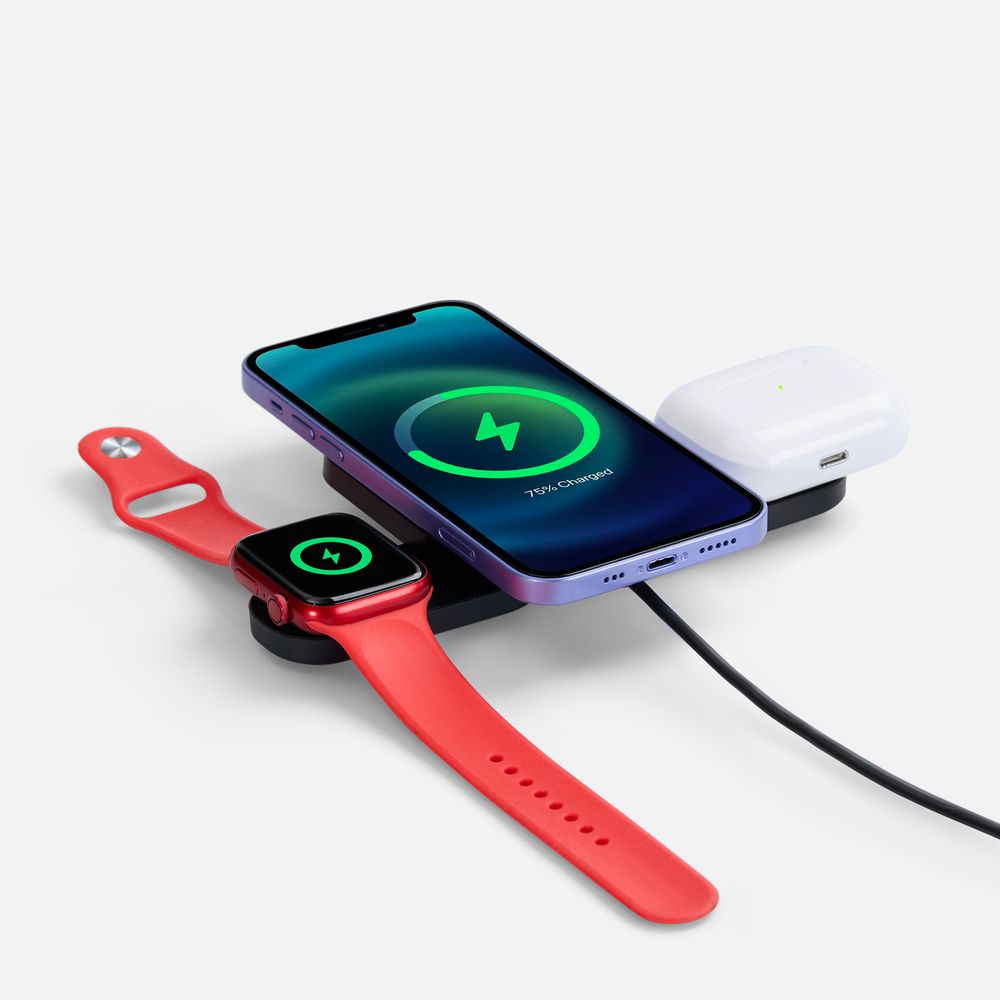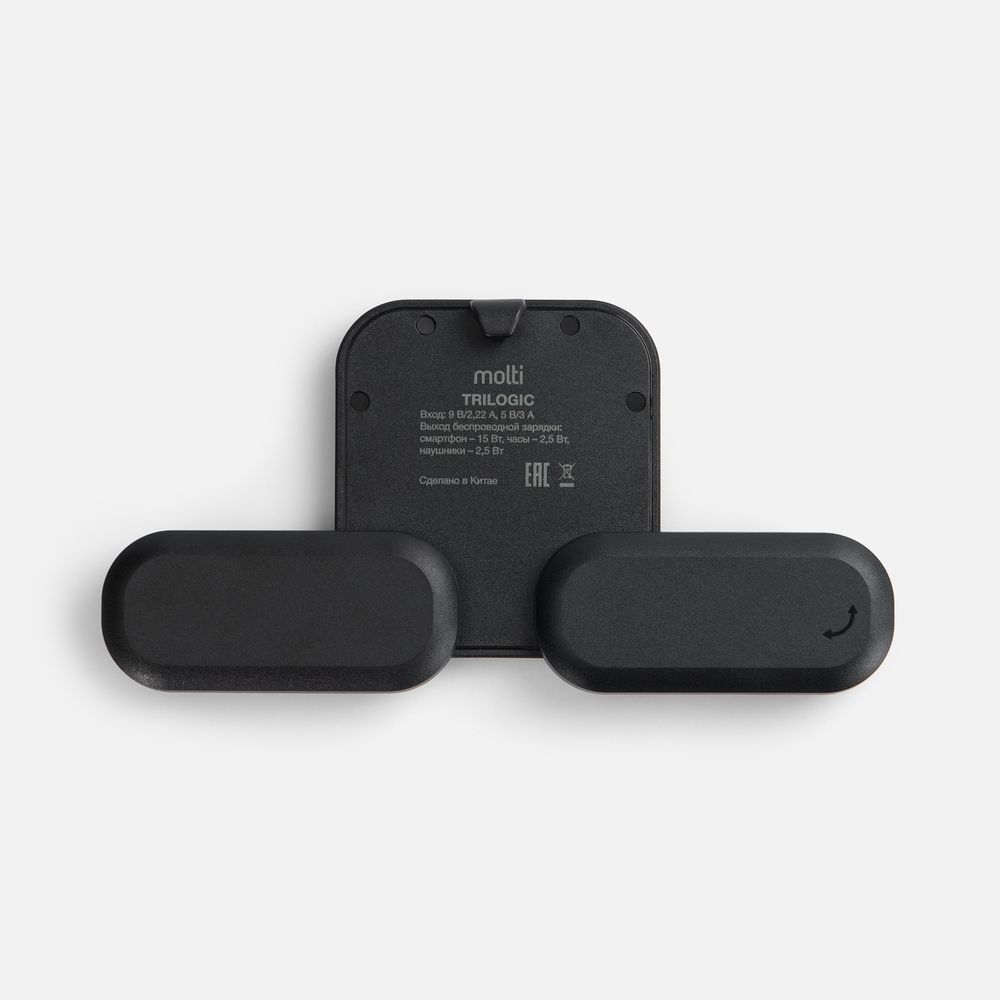 Trilogic — компактное устройство беспроводной зарядки для самых мобильных и современных пользователей. Площадки для зарядки наушников и часов легко складываются и не занимают места, когда не используются. Поэтому станцию удобно использовать не только в офисе, но и находясь в дороге.