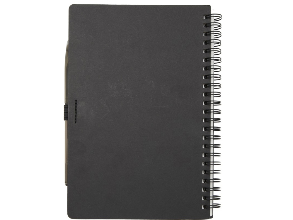 Многоразовый набор из ручки и блокнота в мягкой обложке из каменной бумаги. Блокнот имеет обложку из картона, закругленные углы и 32 листа линованной бумаги плотностью 120 г/м². В производстве каменной бумаги не используется дерево, а на сам процесс изготовления затрачивается гораздо меньше энергии в сравнении с производством переработанной или целлюлозной бумаги. Сзади имеется карман для хранения черной протирочной ткани (входит в комплект). Ручка из переработанного пластика с стираемыми чернилами, прозрачным корпусом, белым ластиком сверху и однотонной цветной рукояткой. Цвет чернил: черный. Длина непрерывной линии: 250 метров. Размер пера: 0,7 мм.