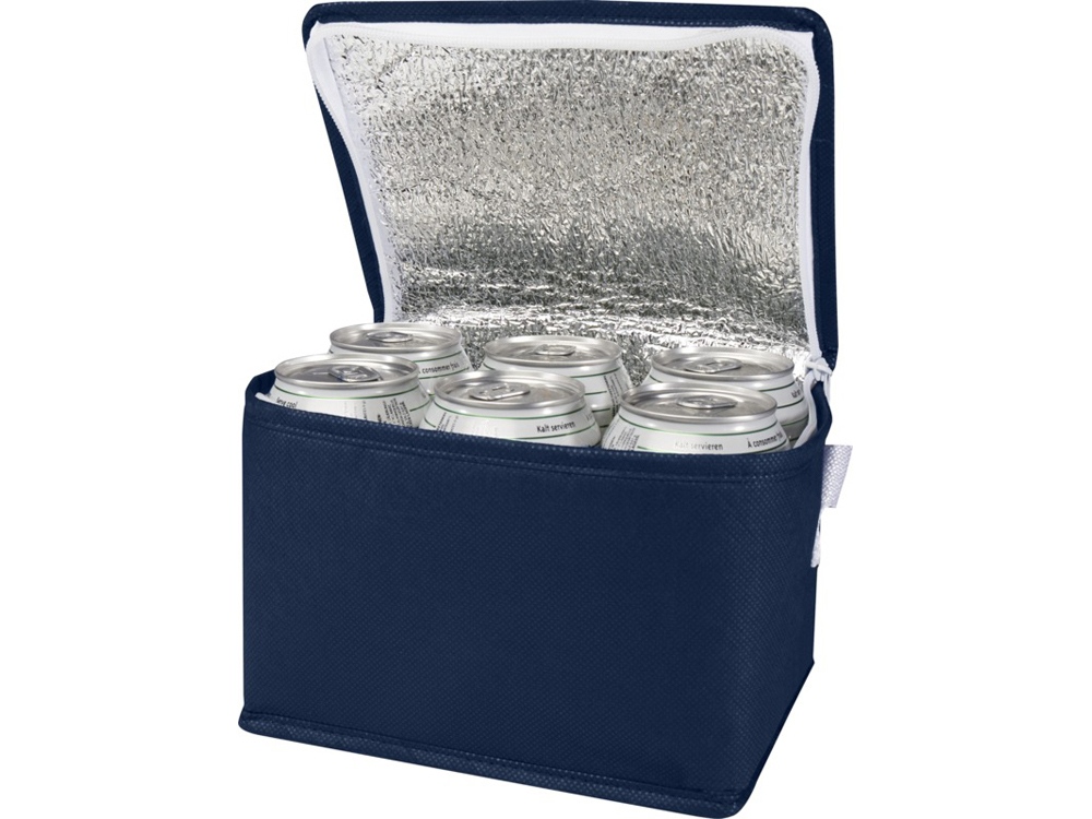 Сделанная из прочного и стойкого к разрывам нетканого RPET, сумка-холодильник Spectrum на 6 банок, изготовленная из переработанных материалов, подходит для хранения до 6 банок и оснащена удобной для переноски ручкой из тесьмы. Объем: 4 литр. GRS certified recycled polyester.