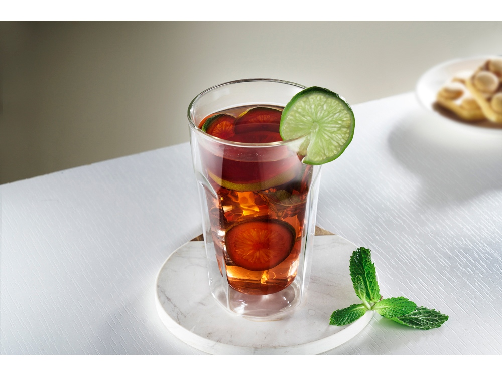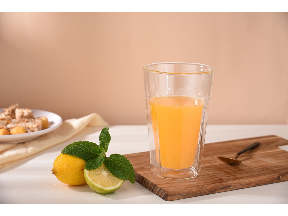 Этот стеклянный стакан с гранями Silva — идеальное сочетание ностальгии и современных технологий. Внутренние грани, вдохновленные классическими советскими стаканами, придают ему винтажный шарм, а двойные стенки помогают дольше сохранять температуру напитка и предотвращают обжигание рук. Особенности: - Двойные стенки из боросиликатного стекла – поддерживают напиток горячим или холодным дольше обычного. - Внутренние грани – придают уникальный ретро-стиль и делают стакан особенно эффектным. - Универсальность – идеально подходит для свежих соков, лимонадов, чая и кофе. - Объем 450 мл – удобный и вместительный, отлично подходит для тех, кто любит насладиться напитком без частых доливаний. - Прочное стекло – устойчиво к перепадам температур и не впитывает запахи. Этот стильный и практичный стакан станет украшением любого стола, наполняя атмосферу уютом и легкими нотками прошлого. Незаменимый аксессуар для любителей качественной посуды и эстетики ретро! Не рекомендуется использовать в посудомоечной машине и микроволновой печи.