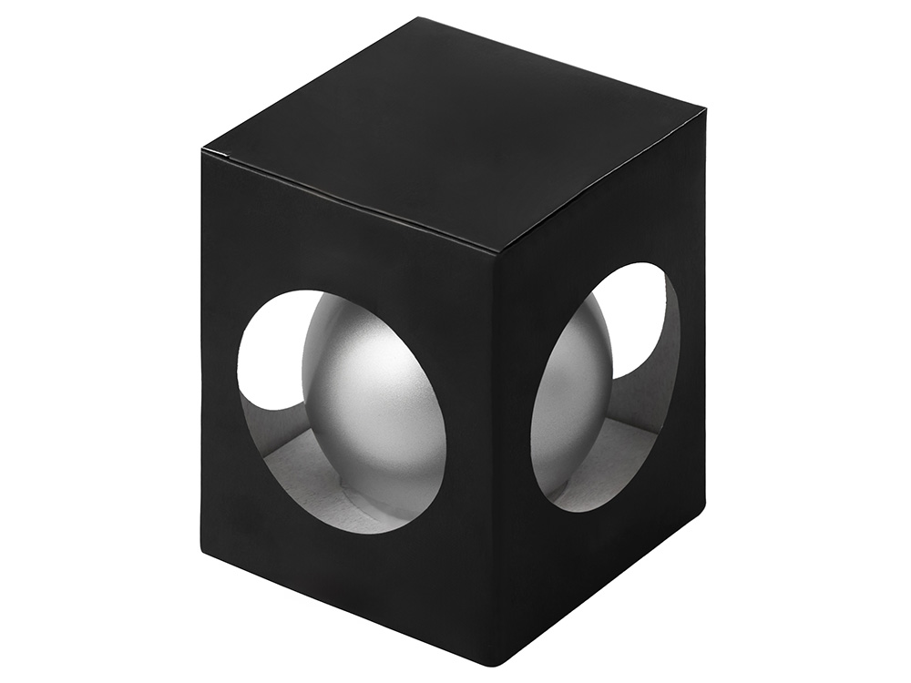 Стеклянный елочный шар Christmas bauble, серебро, металлик, с серебристым колпачком в черной коробке купить оптом и в розницу с нанесением логотипа в Казани