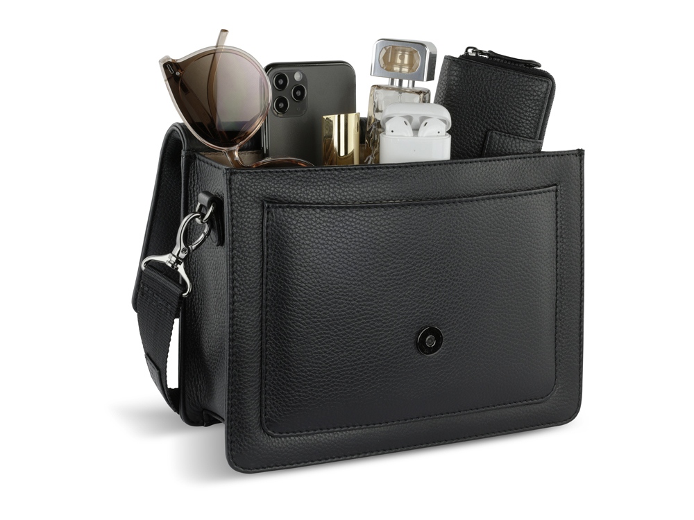 ЖЕНСКАЯ СУМКА ЧЕРЕЗ ПЛЕЧО ELSA Готовы к поездке в выходные? Мы раскрасим вашу ленту в соцсетях невероятной коллекцией ELSA. Коллекция ELSA предлагает широкий ассортимент аксессуаров и сумок разных форм и размеров, от элегантных кошельков и изящных наплечных сумочек для выхода в свет до вместительных шопперов и дорожных сумок для путешествий. Все модели серии изготовлены из высококачественной мягкой воловьей кожи и представлены в классическом черном, белом и бежевом цветах. Элегантное тиснение логотипа Bugatti придает очарование каждой модели. Коллекция выделяется продуманной функциональной организацией внутреннего пространства и защитой от радиочастотной идентификации RFID. Кошельки и ключницы оснащены специальным защитным слоем из фольги, который предотвращает незаконное сканирование вашей личной информации и препятствует списанию денежных средств с банковских карт. Какой бы аксессуар или сумку вы бы ни предпочли, будьте уверены, что с коллекцией ELSA вы точно окажетесь в центре внимания. СВОЙСТВА Функциональная организация: основное отделение на магнитной кнопке с карманом на молнии и открытым карманом, передний открытый карман, задний карман на молнии, съемный регулируемый плечевой ремень (до 130 см). Материал: воловья кожа/полиэстер Размер: 25 х 8,5 х 20 см Вес: 0,54 кг