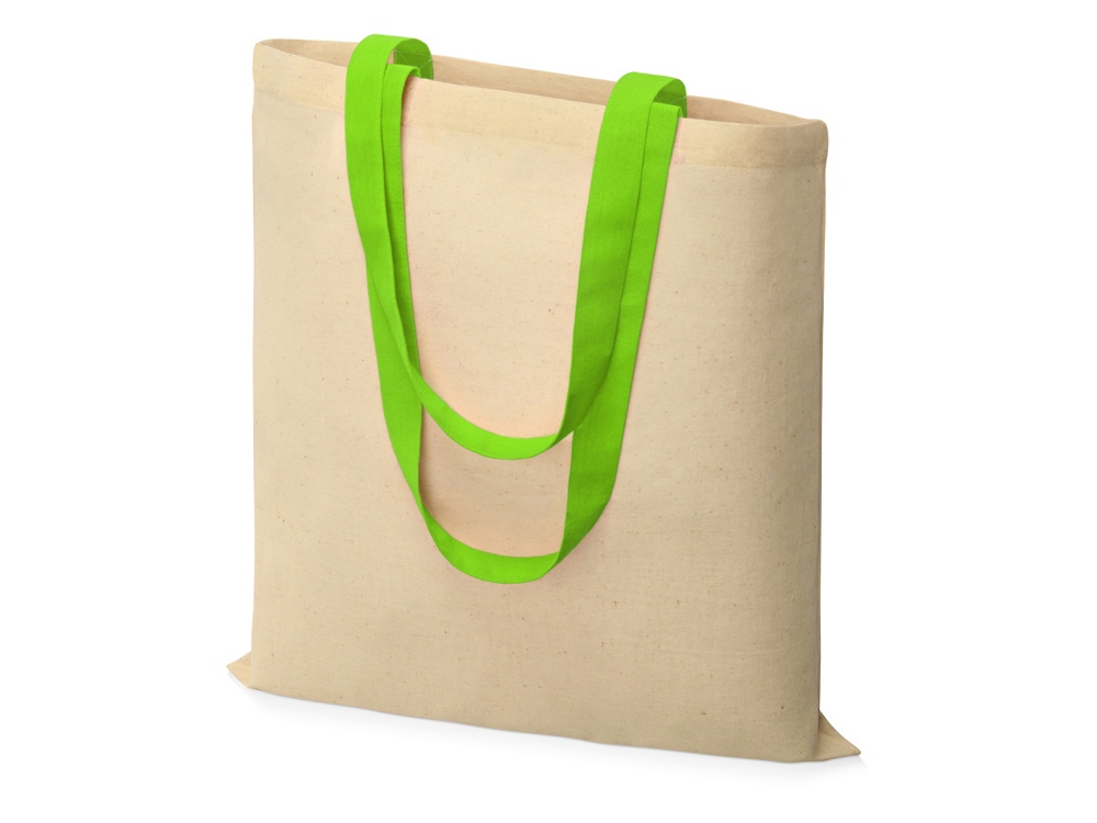 Хлопковая сумка c цветными ручками удобна для покупок благодаря легкости и вместительности. Высота ручек 29 см.