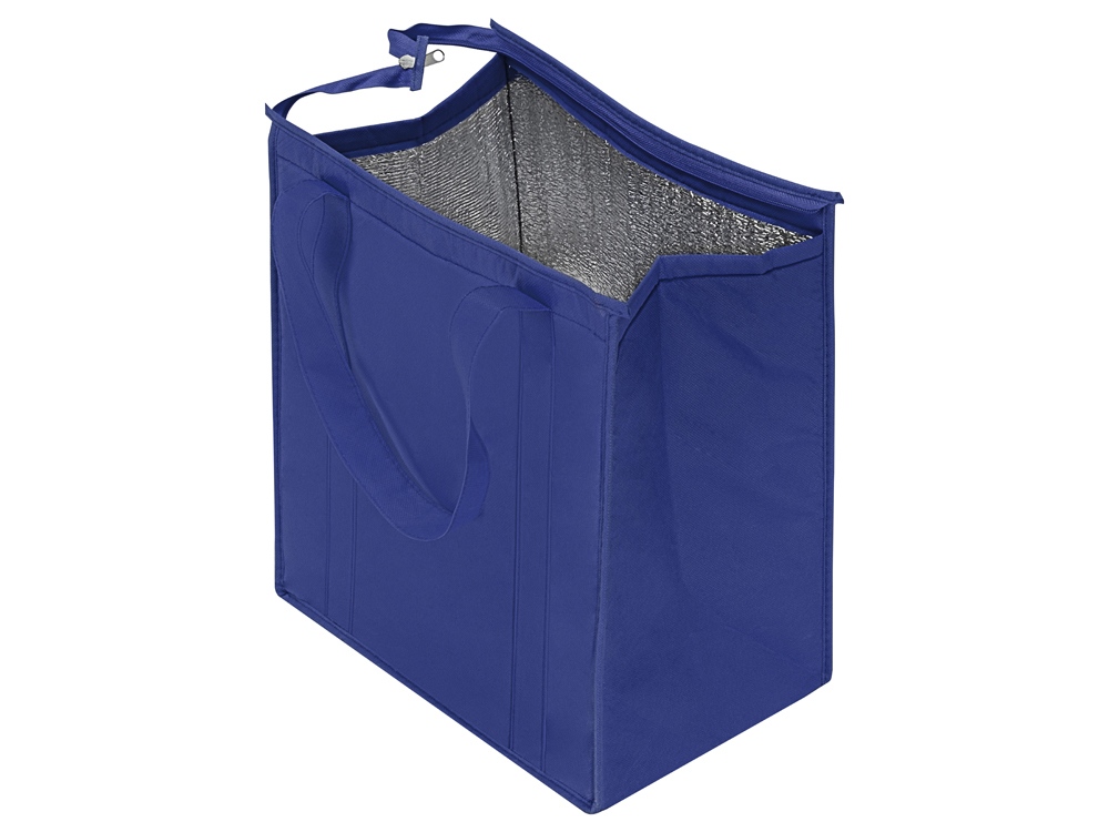 Сумка для покупок Zeus с изоляцией. Основное отделение на молнии. Изоляция при помощи водонепроницаемой подкладки, проклеенной методом горячей спайки. Высота ручек 23,5 см. Сумка может быть вторично переработана и является отличной альтернативой пластиковым пакетам. Нетканый полипропилен 80 г/м2.