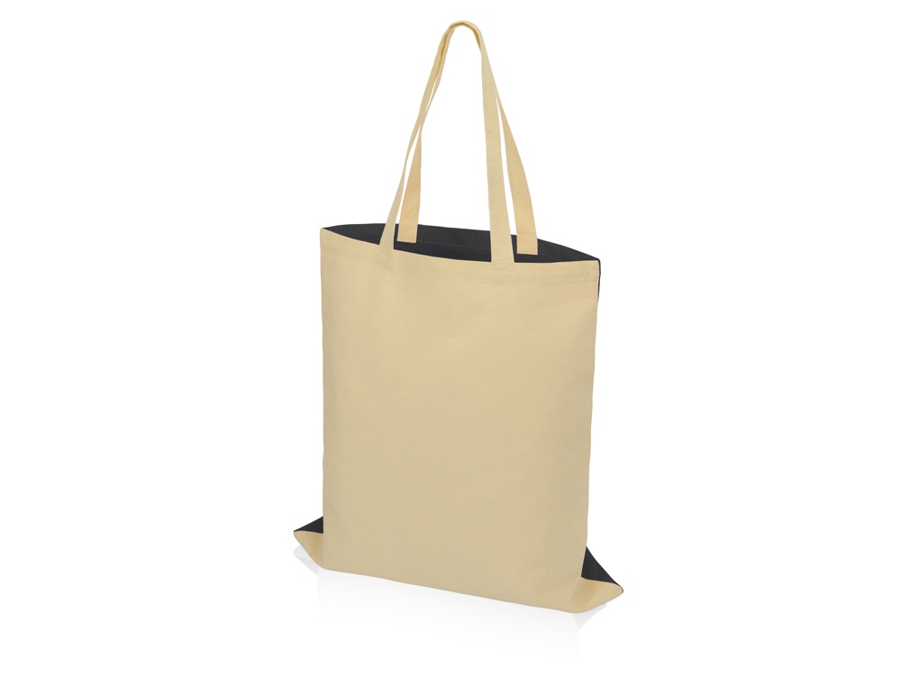 Сумка для шопинга Twin двухцветная из хлопка, 180 г/м2, черный/натуальный купить оптом и в розницу с нанесением логотипа в Казани