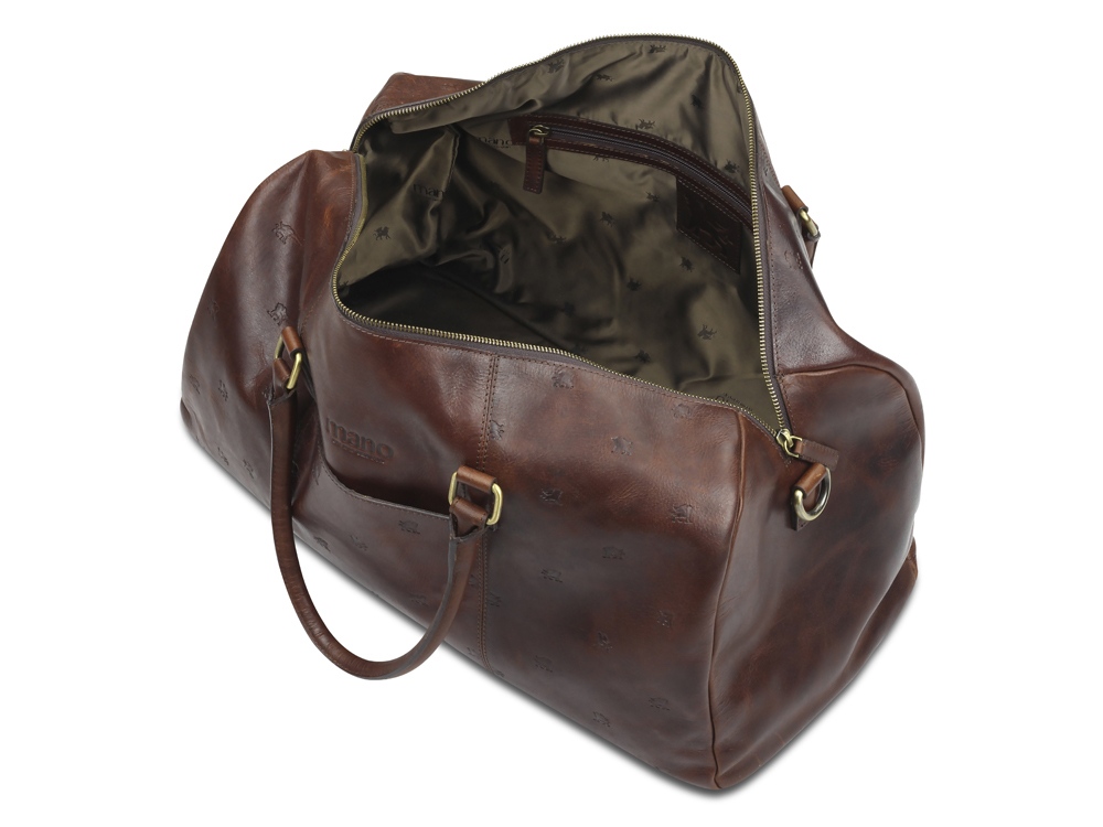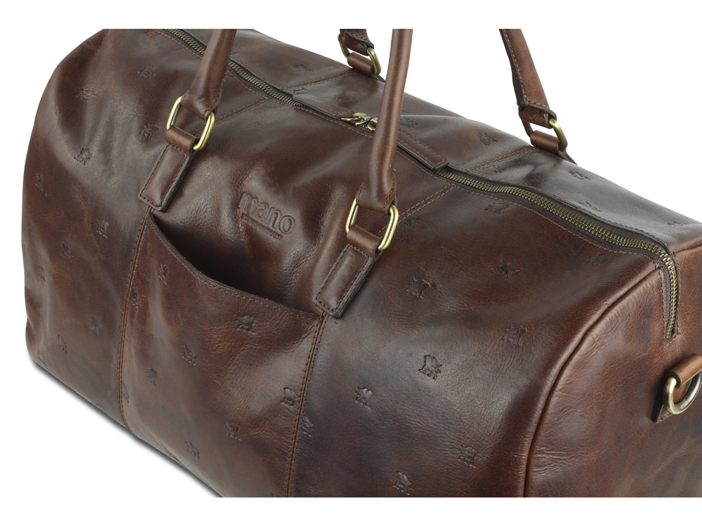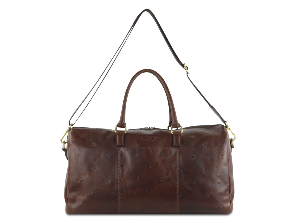 Коллекция DON LEON - квинтэссенция инноваций бренда MANO 1919®. Все изделия коллекции изготовлены вручную из высококачественной натуральной кожи буйвола в роскошном коричневом цвете. Элегантное тиснение в виде льва и изящный логотип подчеркивают индивидуальный стиль коллекции. MANO 1919 ®. Дорожная сумка M191921041 Эстетика и практичность: дорожная сумка M191921041 отличается элегантным стилем и удобной организацией внутреннего пространства. Вместительное отделение и дополнительные карманы обеспечивают идеальное хранение вещей, необходимых для поездки. Дорожная сумка станет незаменимым компаньоном для мужчин, которые ценят удобство и комфорт. Благодаря первоклассной коже, качественной подкладке и надежным застежкам дорожная сумка станет верным спутником в путешествии. Размеры: 27 см (В) x 50 см (Ш) x 24 см (Г) Материал: натуральная кожа буйвола Особенности: • Основное отделение на молнии с внутренним карманом на молнии • 2 больших кармана • Дополнительное отделение • Съемный регулируемый плечевой ремень до 145 см