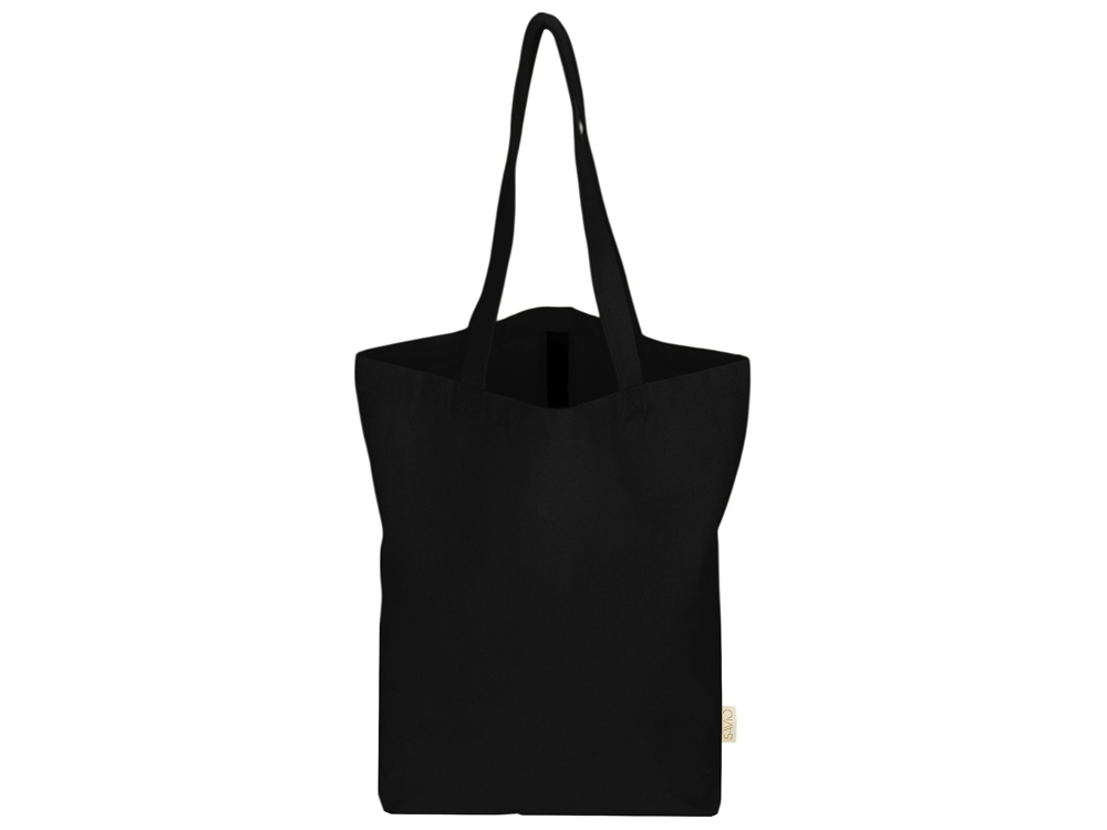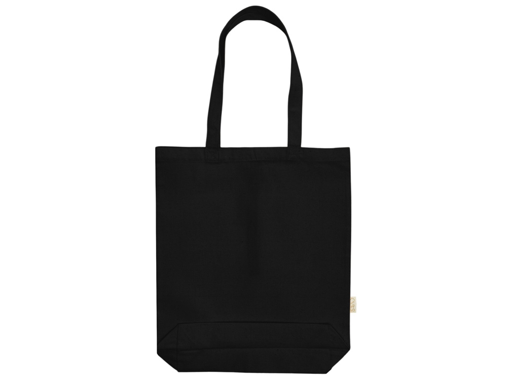 Удобная сумка-шоппер из переработанного хлопка. Можно хранить в сложенном виде и фиксировать с помощью эластичной ленты, застегивающейся на кнопку.