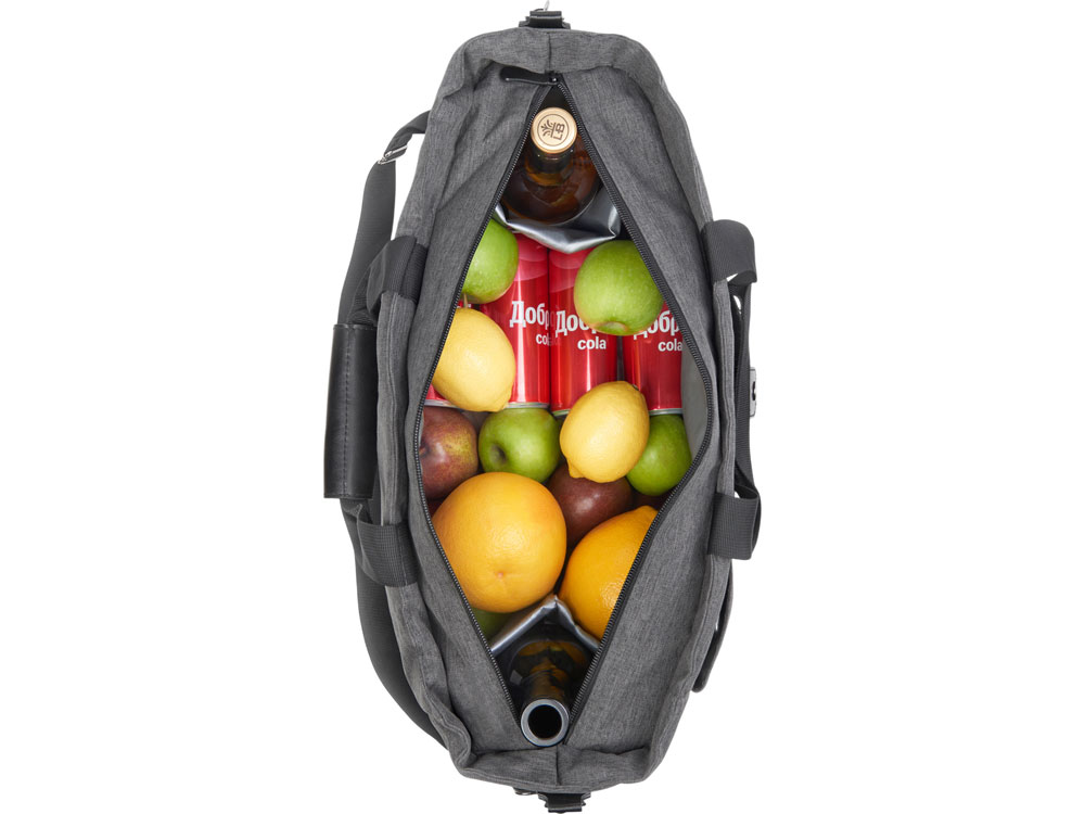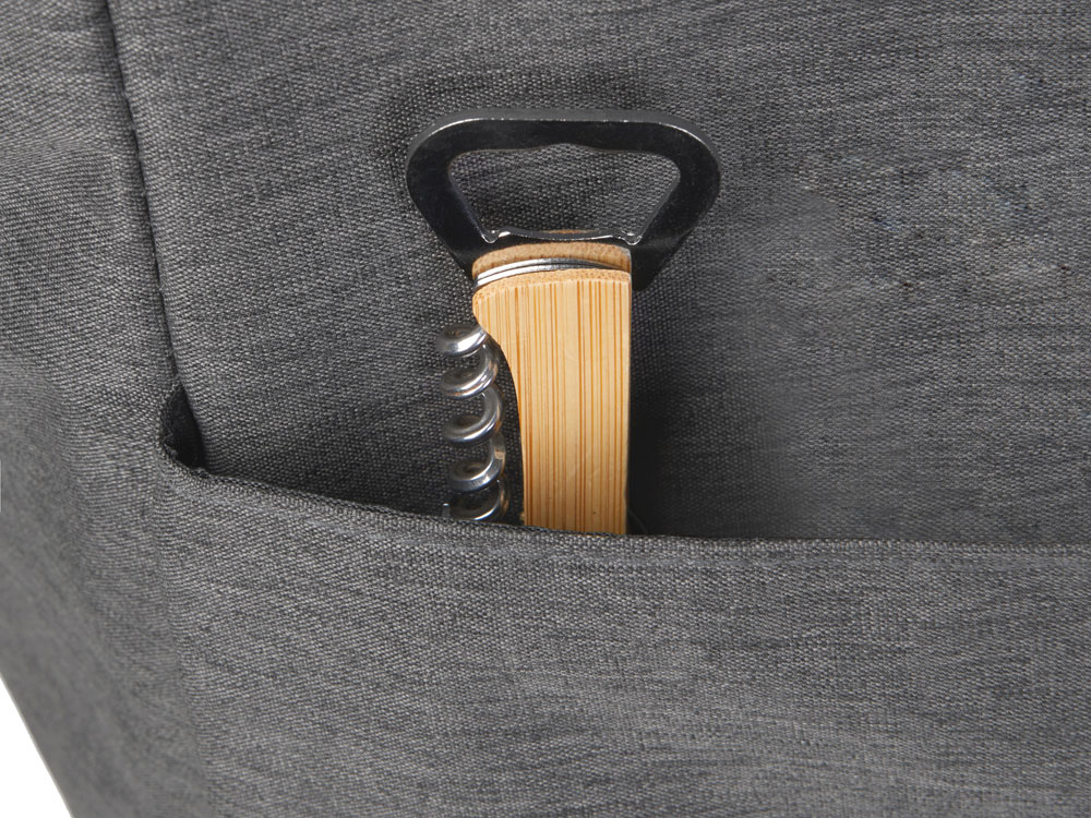 Большую вместительную сумку-холодильник удобно использовать для транспортировки охлаждённых или подогретых продуктов и бутылок с разнообразными напитками. Внутри по бокам сумки расположены 2 изотермических кармана для высоких бутылок. Основное отделение на молнии. 2 ручки с фиксатором на липучке для удобства носить в руке. Большой наружный карман на кнопке. Съемная лямка на плечо регулируется по длине. Выгодный бонус - штопор с бамбуковой ручкой в комплекте.