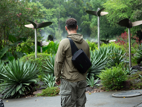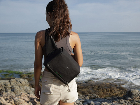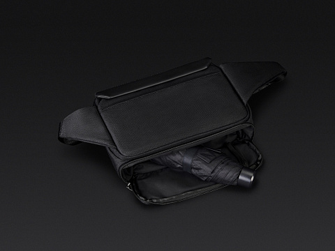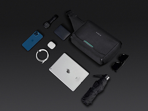 Сумка-слинг - модный и стильный аксессуар. Карман быстрого доступа к содержимому на магните разработан для большего удобства при использовании. Множество карманов внутри помогают аккуратно раскладывать содержимое. Задний потайной карман закрывается на магнит. Карман для бутылки или зонта на дне сумки. Карабин для ключей на ретракторе. Лямка с магнитной застежкой. Водостойкие материал и молнии. Спереди светоотражающий элемент для большей защиты в темное время суток. Поставляется в коробке с ручкой.