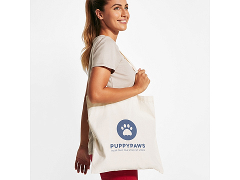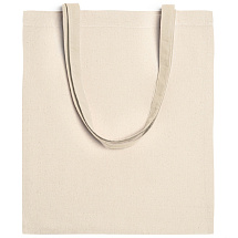 Сумка-тоут из хлопчатобумажной ткани натурального цвета с длинными ручками в тон.